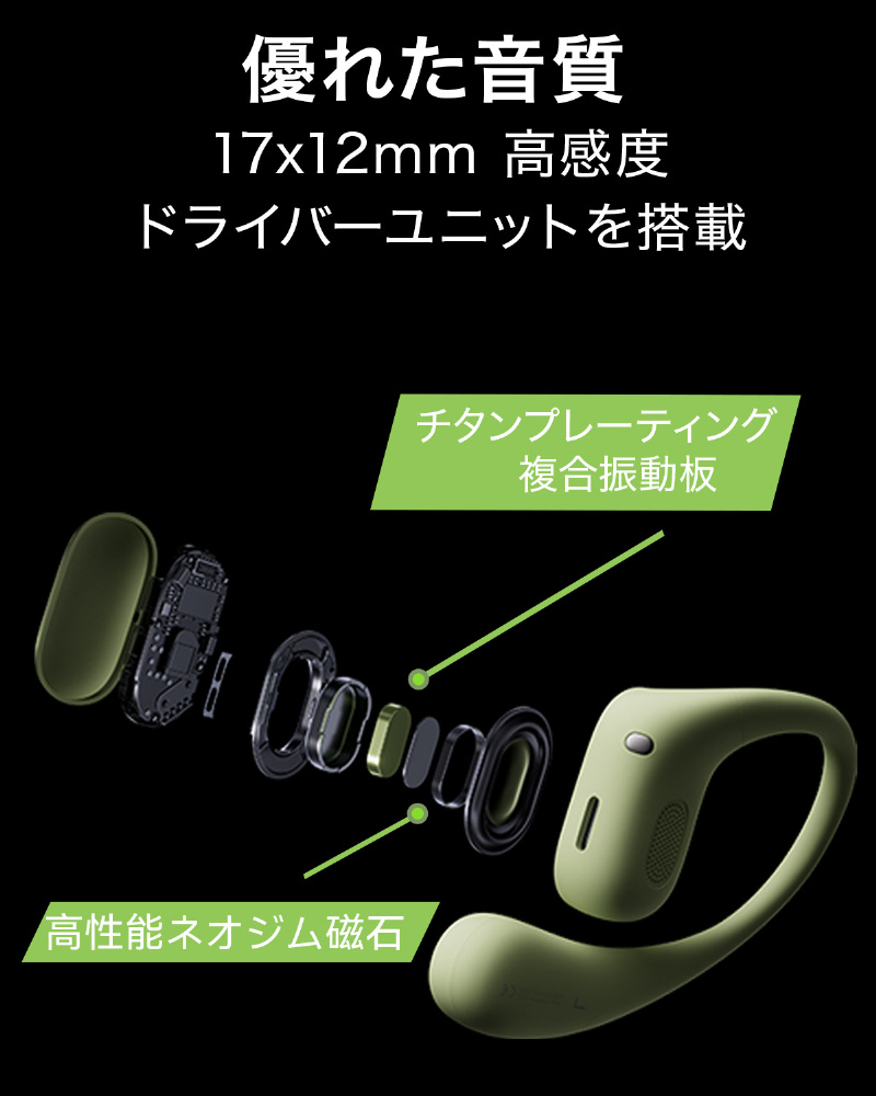 完全ワイヤレスイヤホン グリーン FREEARC/GREEN [ワイヤレス(左右分離) /Bluetooth対応]