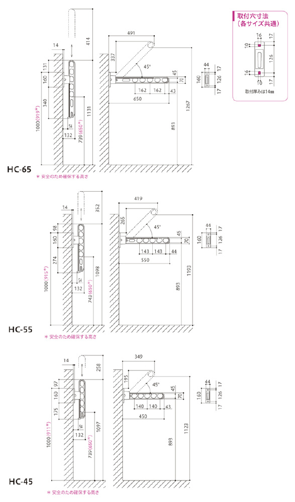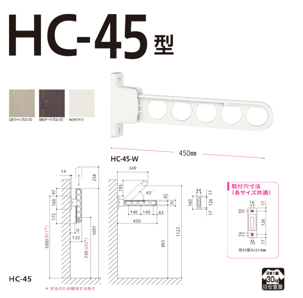 屋外腰壁用物干 HC型 スタンダードタイプ 1本 ホスクリーン ダークブロンズ HC-45-DB