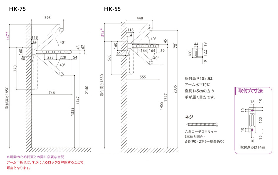 3段階角度調整が可能。窓壁用のスタンダードタイプ。
