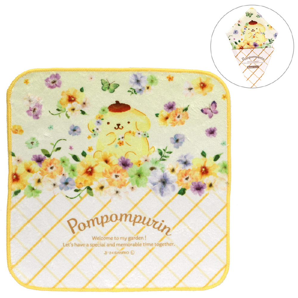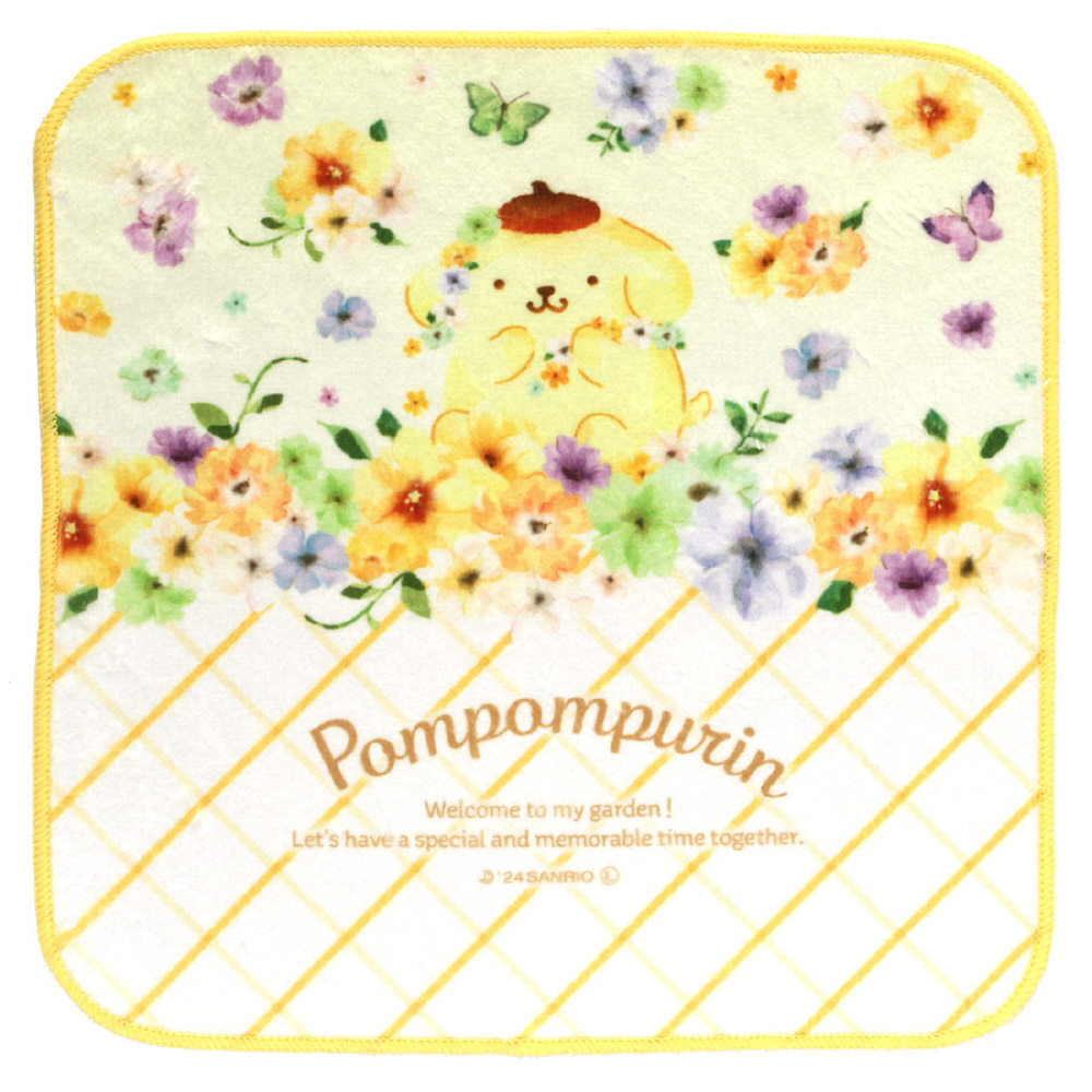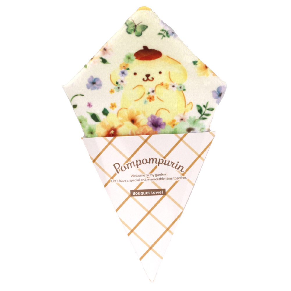 お花と蝶々に囲まれたキャラクターたち。まるでブーケのようなデザインのタオルハンカチ。水彩タッチで大人っぽいデザインにしています。