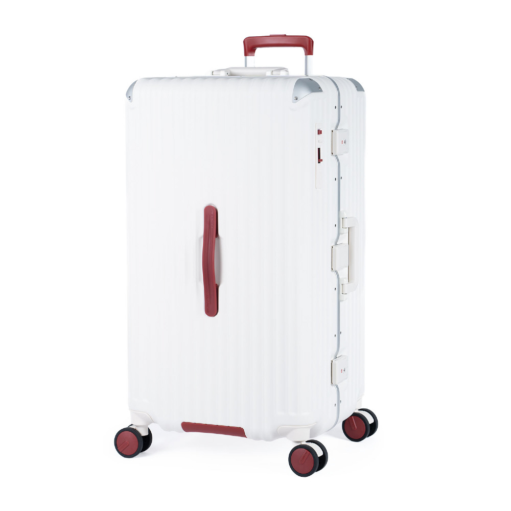 スーツケース フレームタイプ 宿泊目安:7〜9日間 098L 大容量縦長タイプ 前輪ストッパー TSAロック搭載 バニラ×レッド GM-056-28