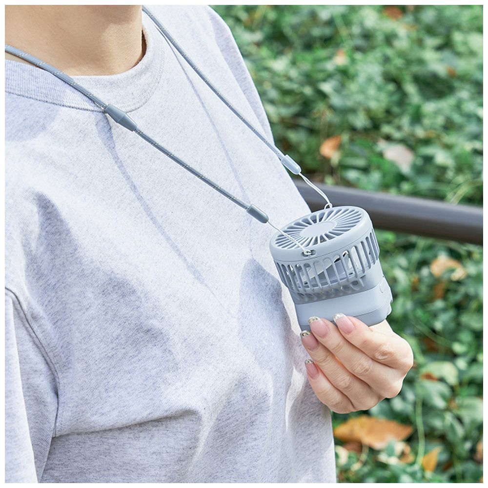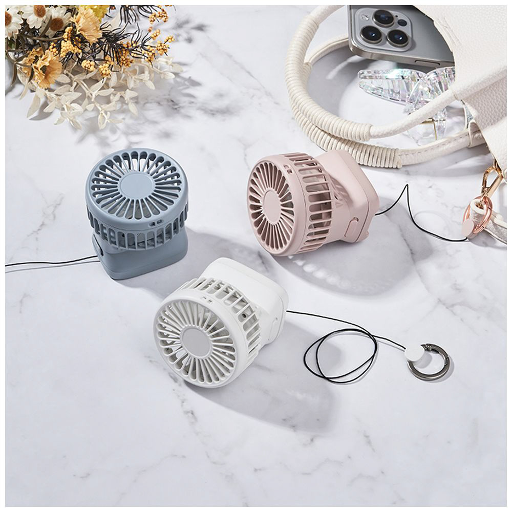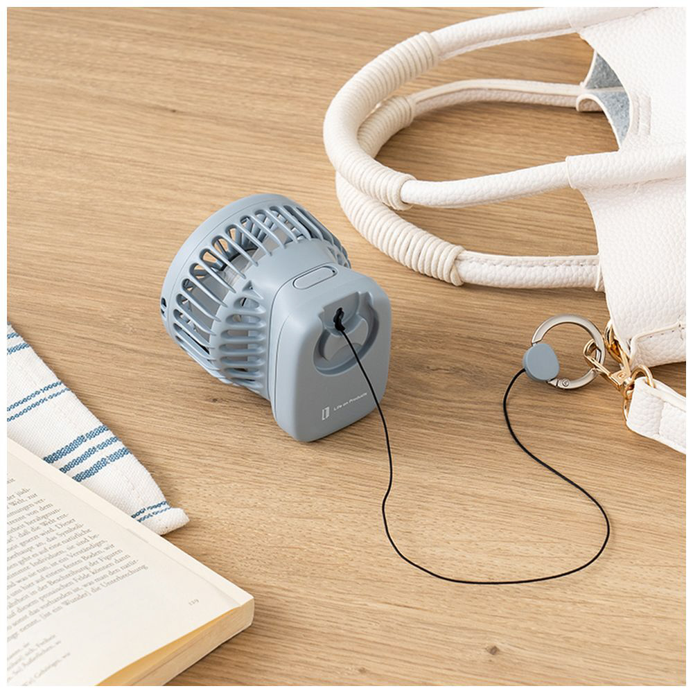 カラビナで鞄に掛けたら、そのまま本体を引っ張って使える、リール仕様のユニークで便利なファン。