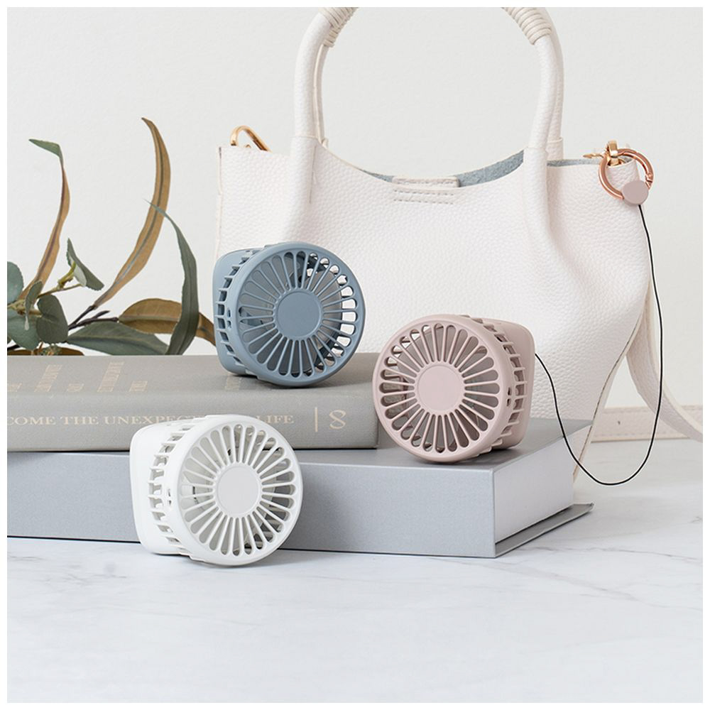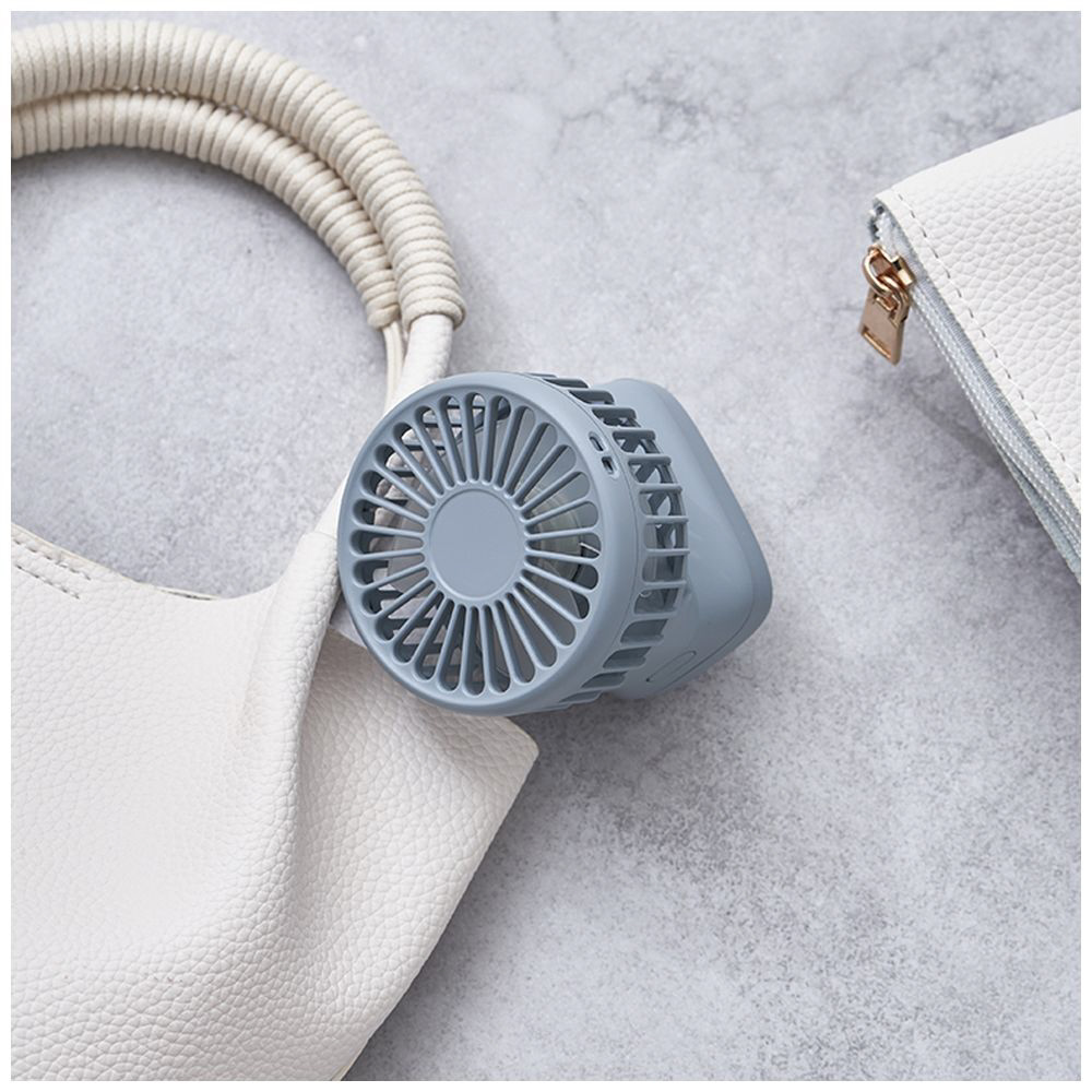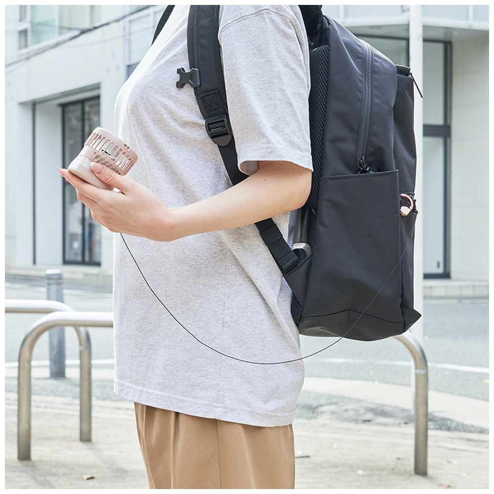 付属のカラビナでバッグに付ければ、サッと伸ばして使えて、バッグの中を探し出す手間も不要。ファンの持ち忘れも防止できて便利です
