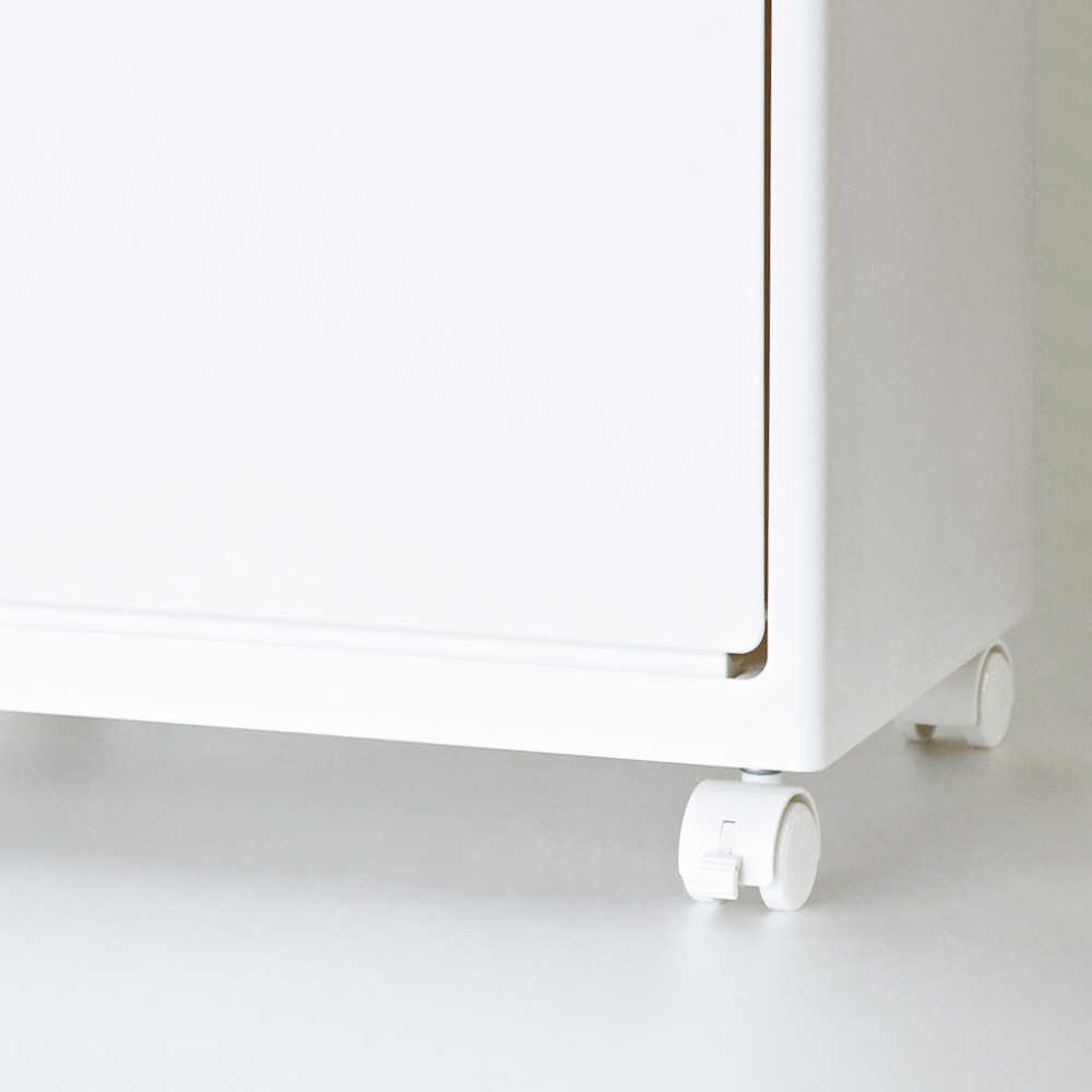 お掃除や模様替えのときなどのちょっとした移動の時にラクに動かせるキャスター付きです。ストッパーもついているので、しっかりと位置を固定することもできます。