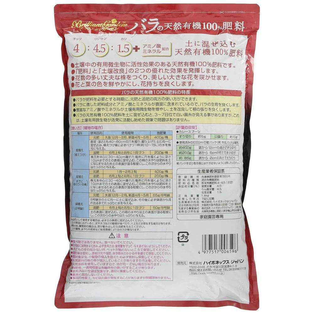 ブリリアントガーデン バラの有機肥料 1.8kg