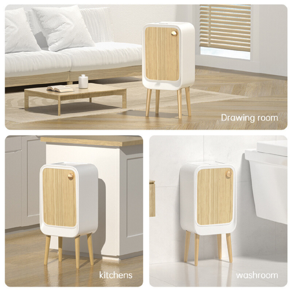 一見ゴミ箱とは分からないスタイリッシュなデザインが特徴で、あえて目立つ場所に置いておきたくなる主役級のインテリアです。部屋の美観を保つ妥協無しのデザインにこだわりました。どのテイストの部屋に置いても違和感がなく、リビング・寝室・書斎・キッチンそしてオフィスへの設置にもオススメです。