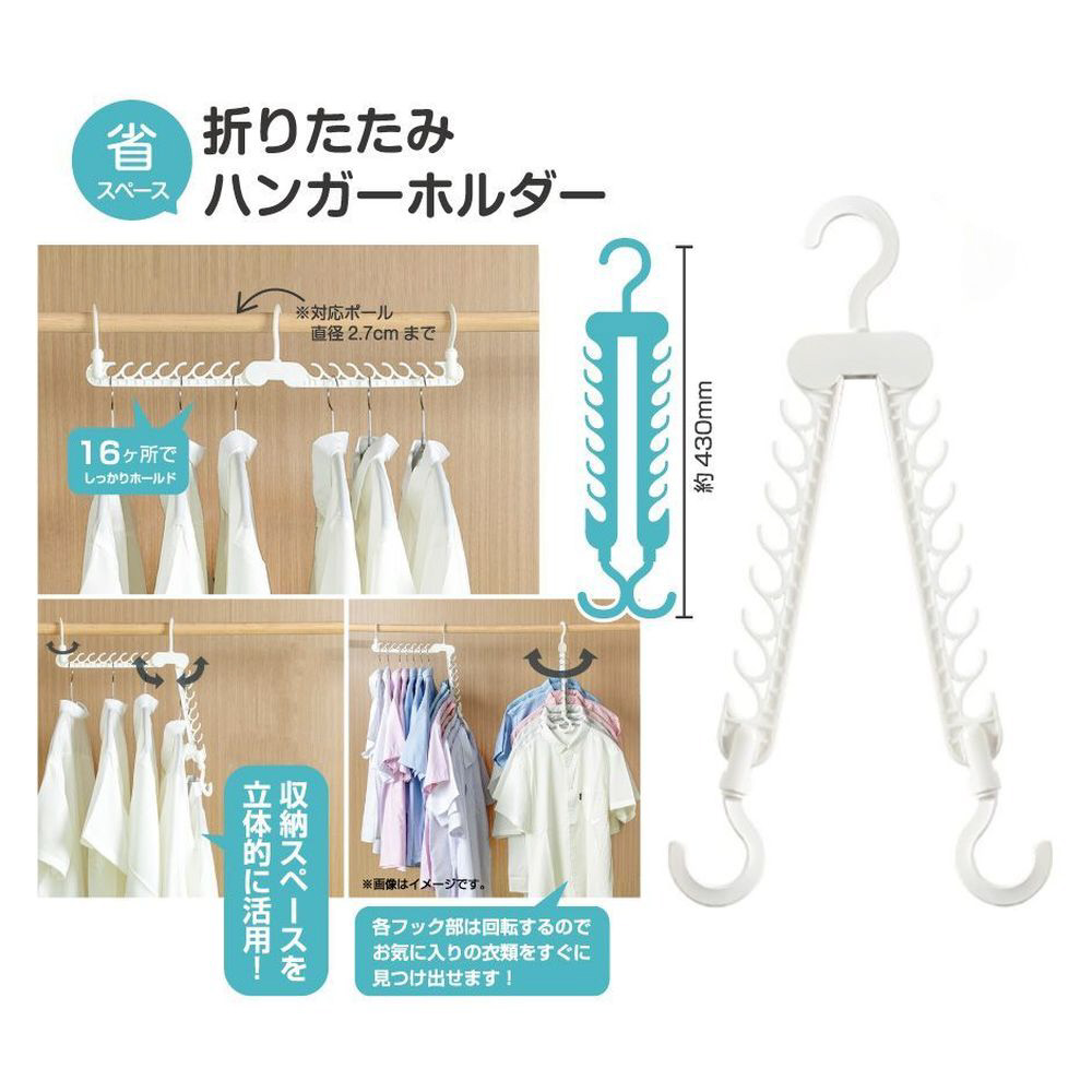 省スペース折りたたみハンガーホルダー ホワイト 30840