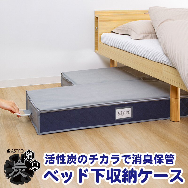 615-23 活性炭 グレー×ネイビー ベッド下収納ケース