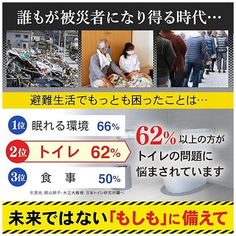 災害時のトイレ問題は、簡易トイレを備えることで解決できます。