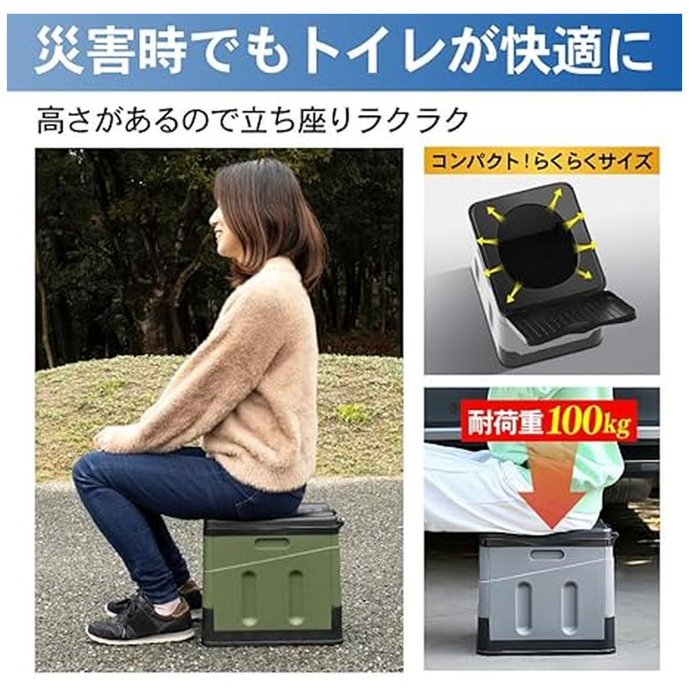 また、簡易トイレとしてだけではなく、コンテナボックス、踏み台、イスなど使い方もさまざまで多くのシーンに使用できます。