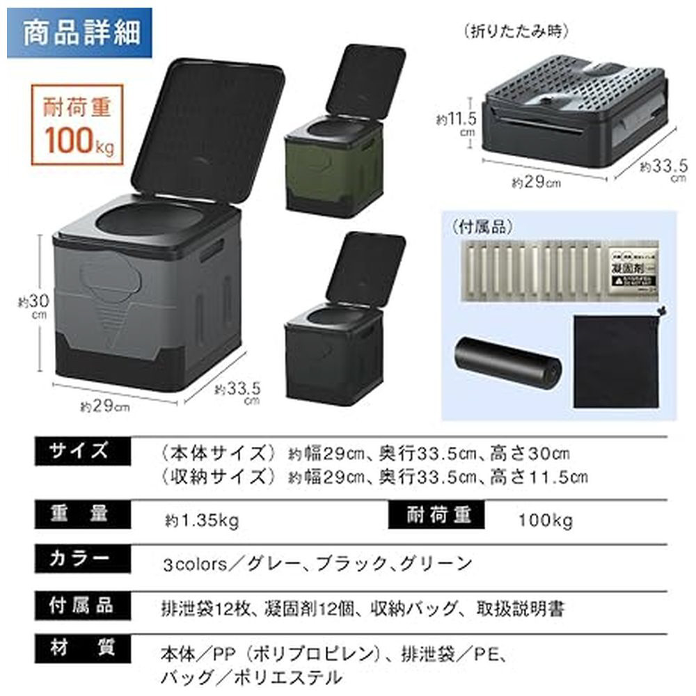 組立式救急トイレ(凝固剤・処理袋付)S グレー P0218EPTWS-GRY