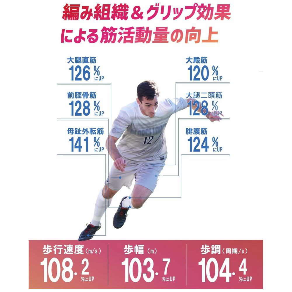解剖学的アプローチでしたグリップ力は従来ソックスの1.6倍!さらにSEK抗菌防臭加工の糸を採用。