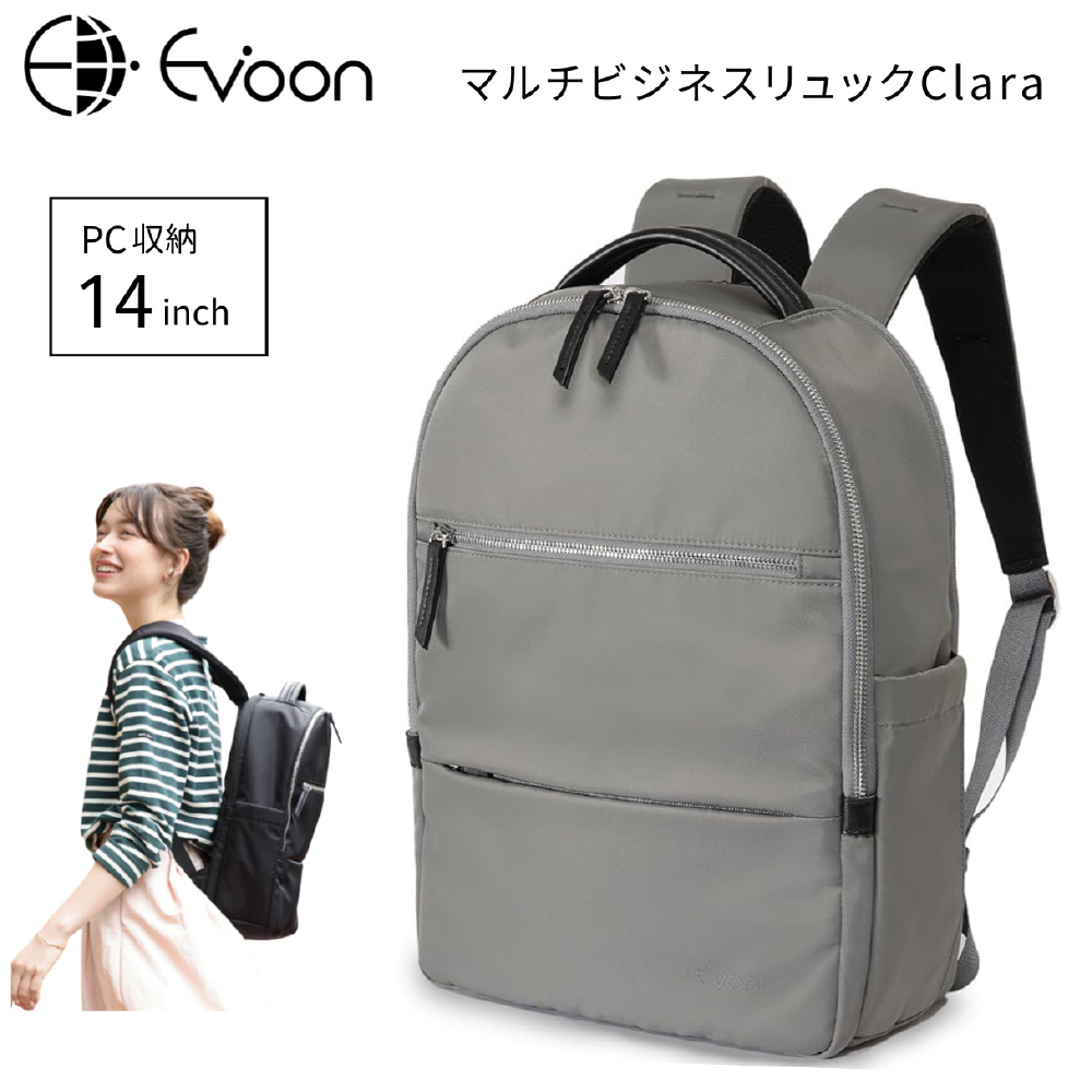 Evoon(エボーン)が提案する「マルチビジネスリュックClara」は、デザインと機能性をどちらも妥協しない、軽量モデルのレディースリュック。