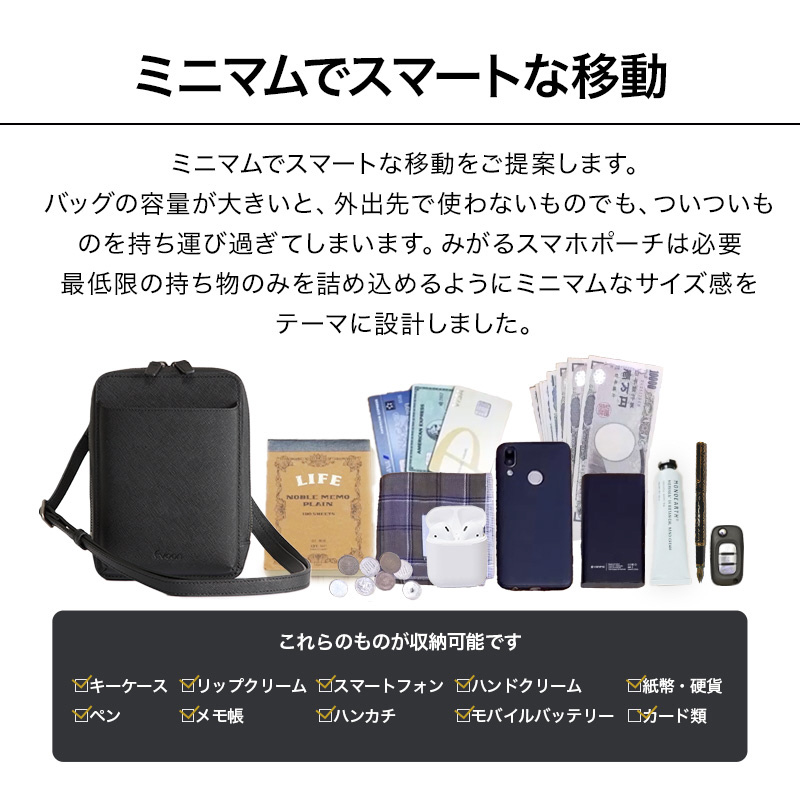「みがるスマホポーチレザー」は、“必要なものだけを、スマートに持ち歩く”をテーマに開発されたマルチポーチです。