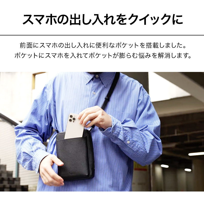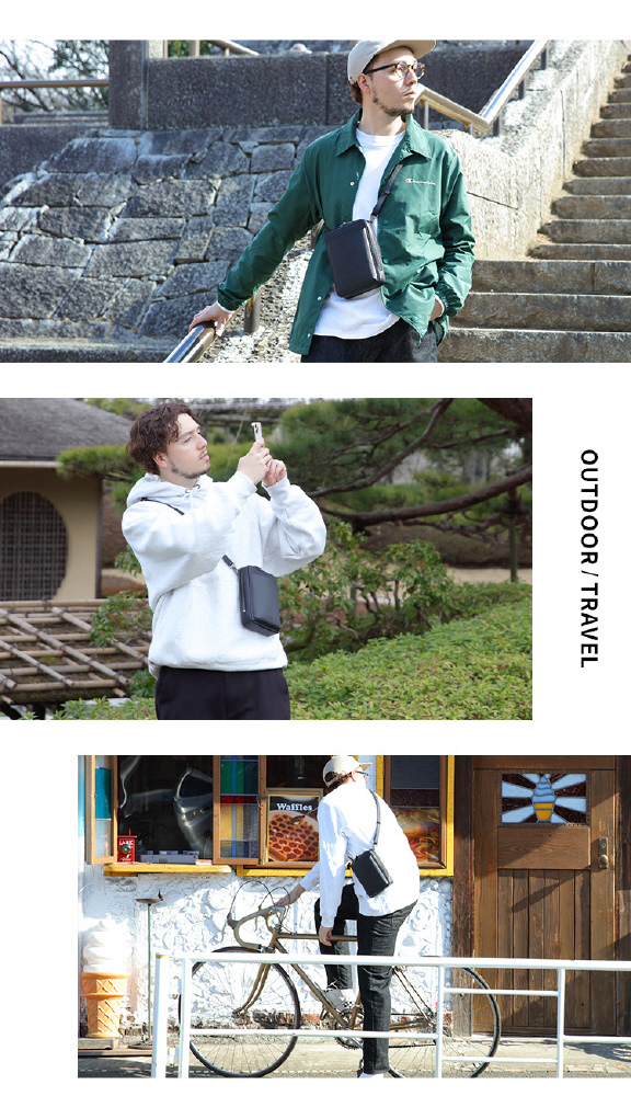 スマホポーチ・ミニショルダー・財布・小物入れの4役をこなし、旅行・出張・買い物・会食・アウトドアなど、あらゆるシーンにフィットするミニマルデザインと機能性を両立しました。