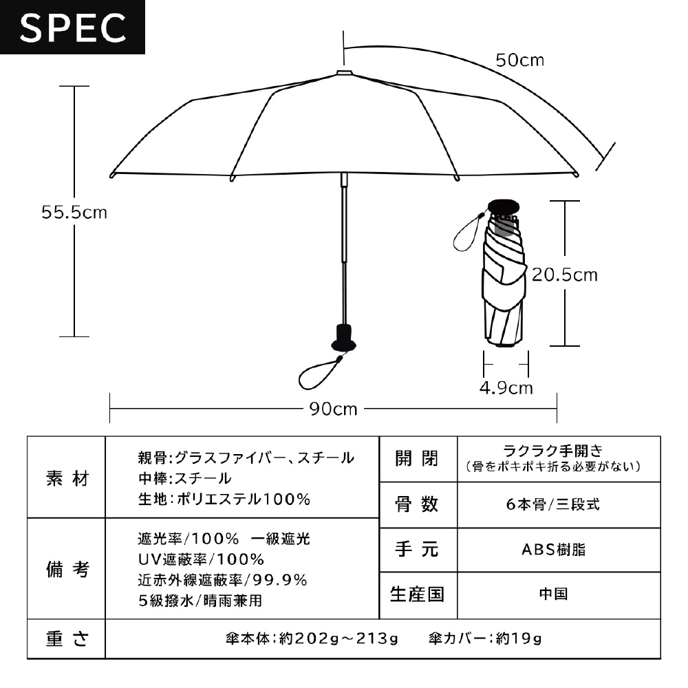 携帯に便利なサイズ感 親骨50cmコンパクトユニセックス日傘