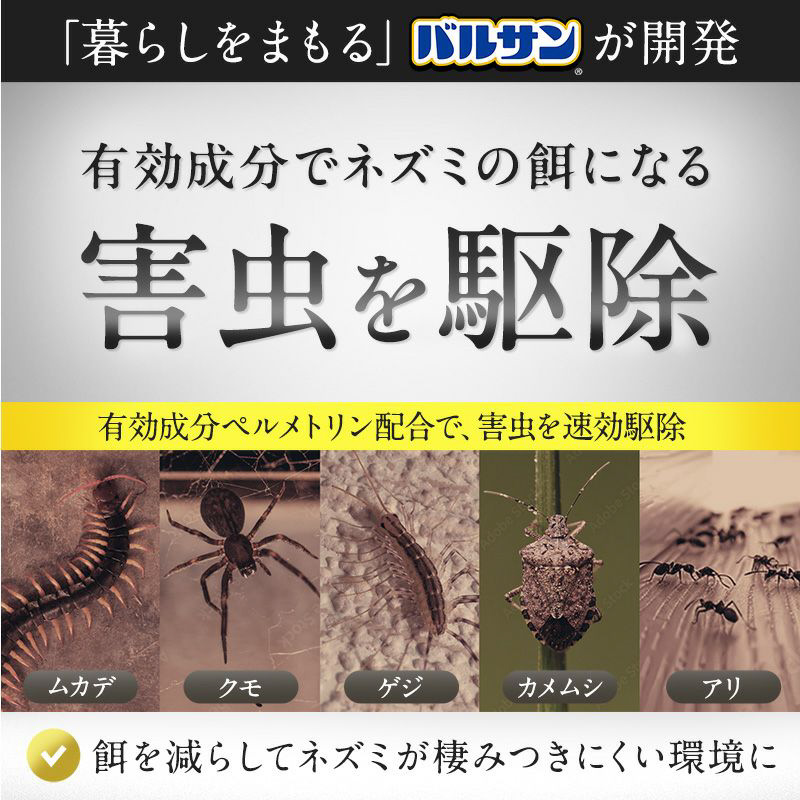 ・有効成分ペルメトリン配合で、ネズミの餌にもなる不快害虫を速攻駆除