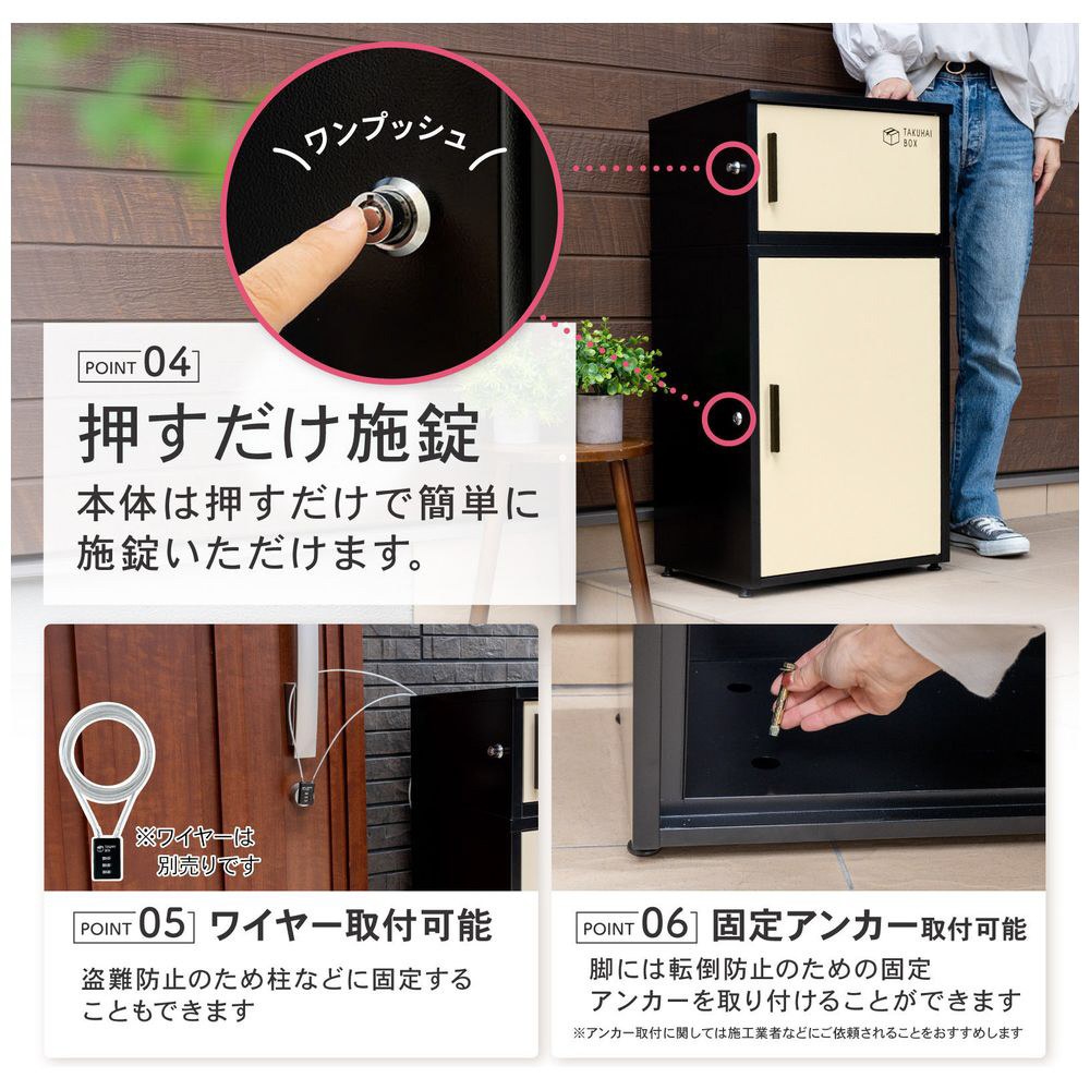 本製品 TAKUHAI BOXは、今までの常識を覆し、デザイン性と機能性を兼ね備えた最新モデルの宅配ボックスです。