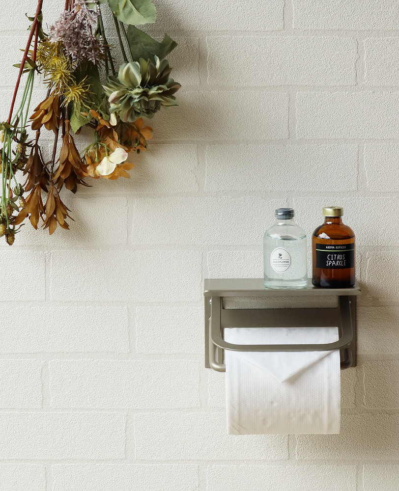 光沢を少し抑えたマットなアイアンで仕上げており、インテリア性の高いトイレ空間を彩るペーパーホルダーです。