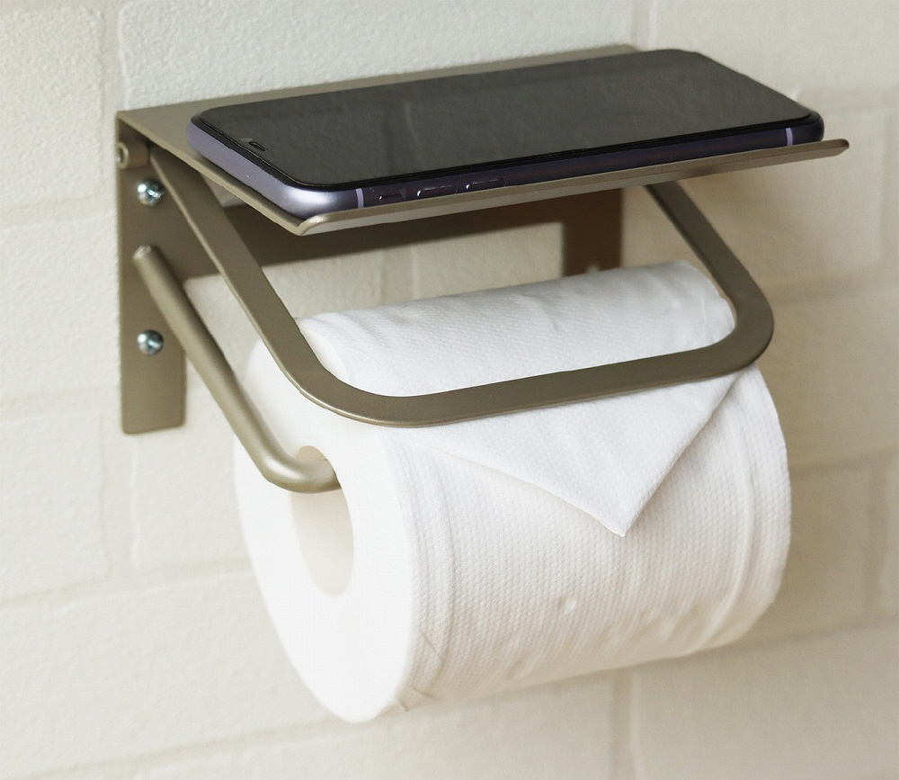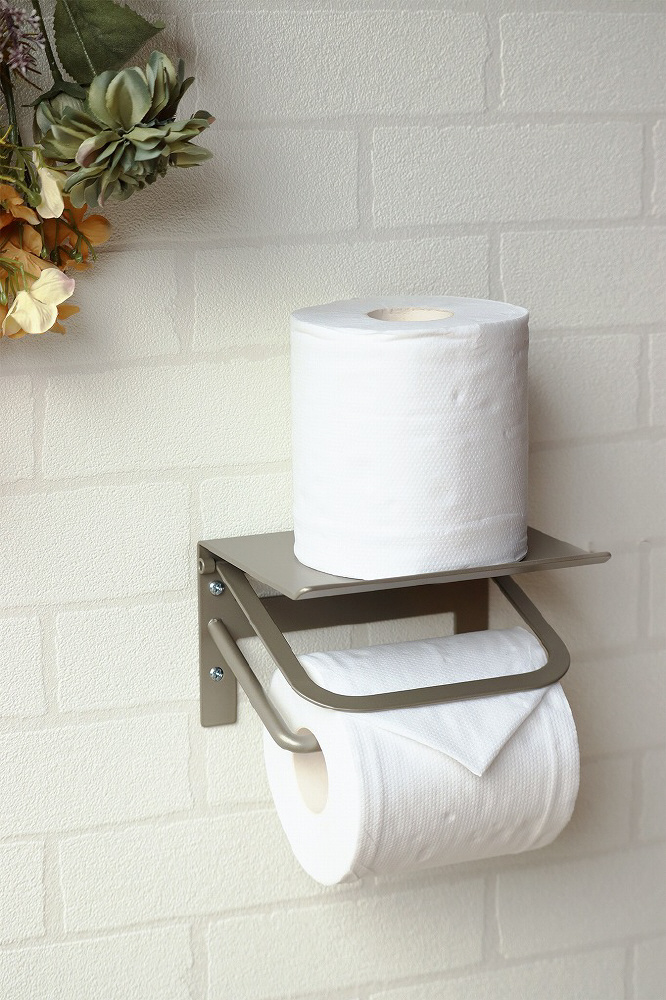 シンプルデザインで天板先端反り返しがあり、物が転落しにくいアイアントイレットペーパーホルダー