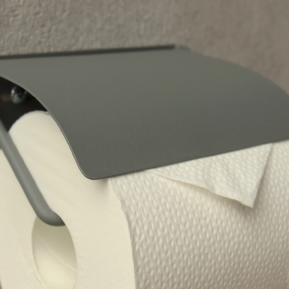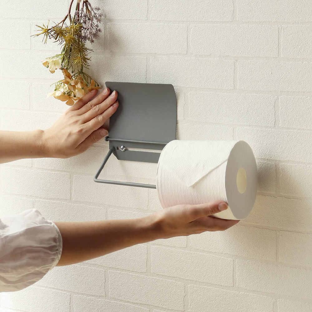光沢を少し抑えたマットなアイアンで仕上げており、インテリア性の高いトイレ空間を彩るペーパーホルダーです。