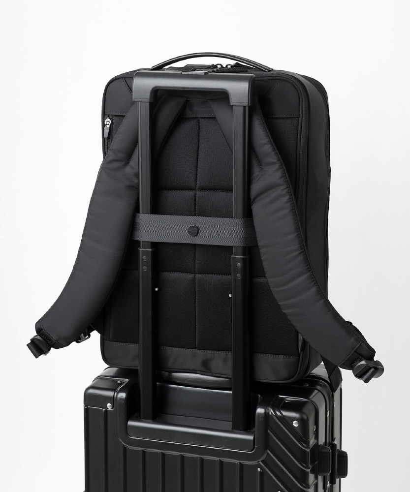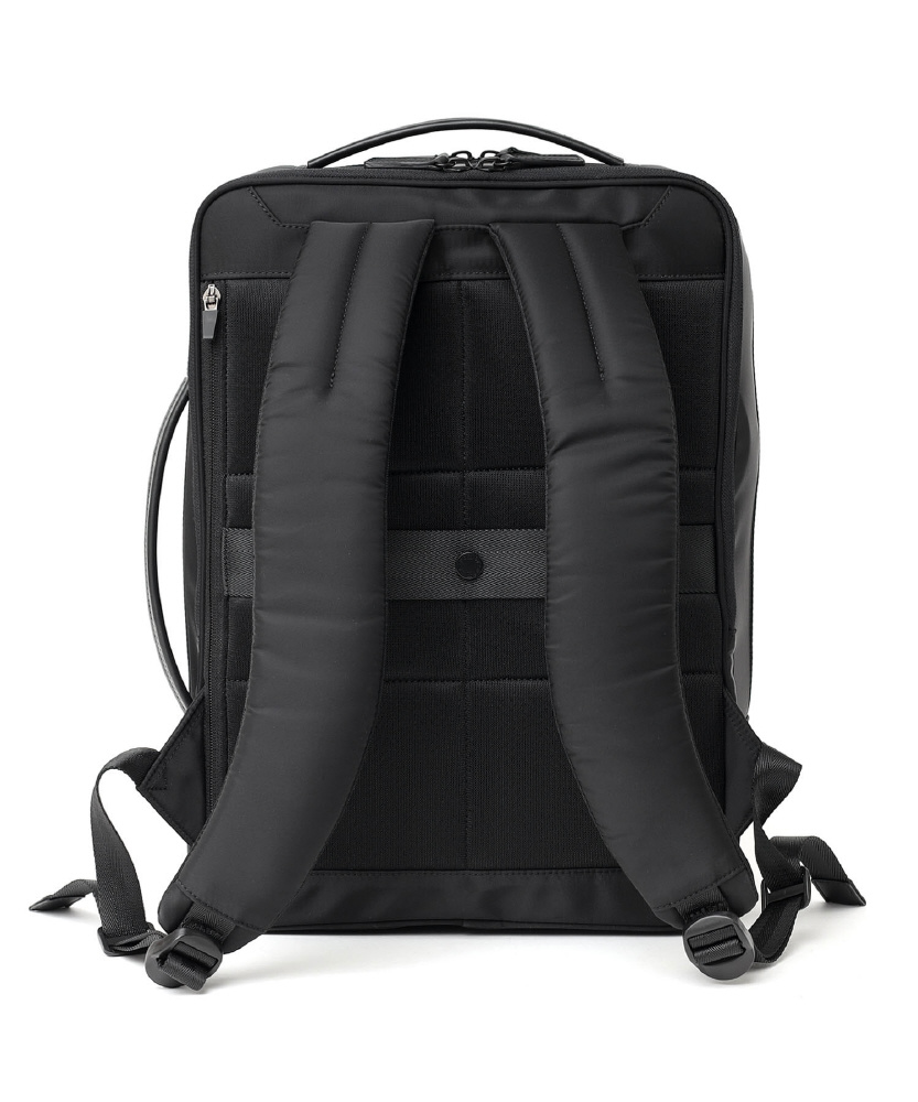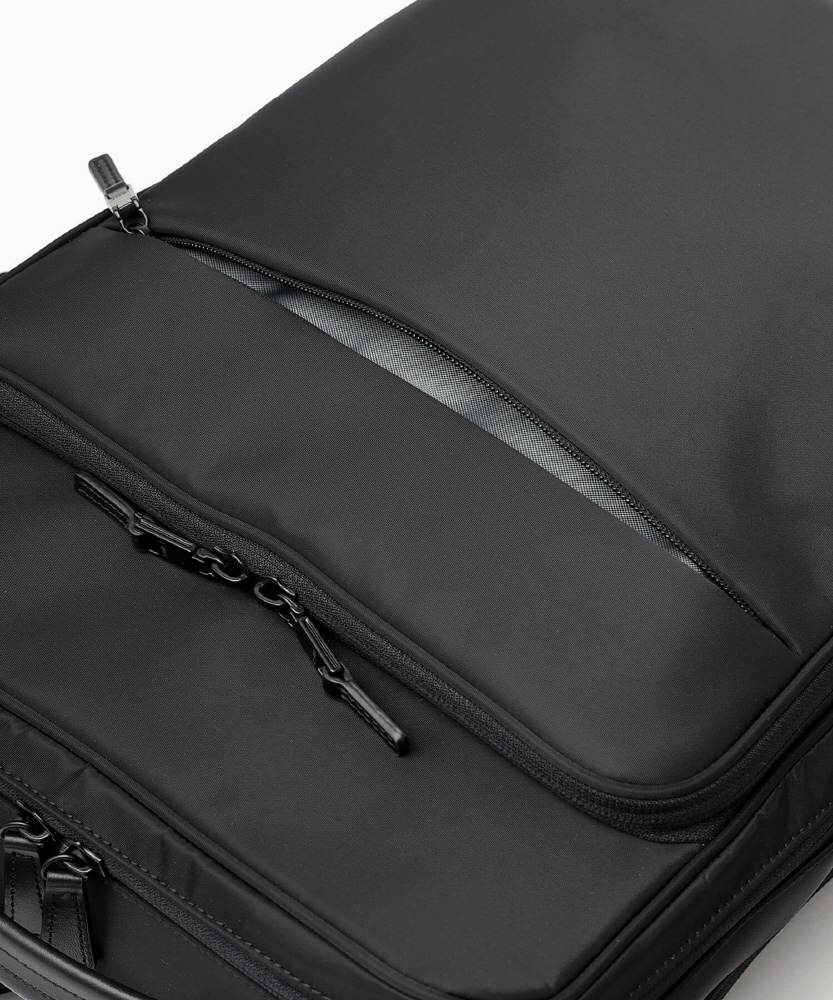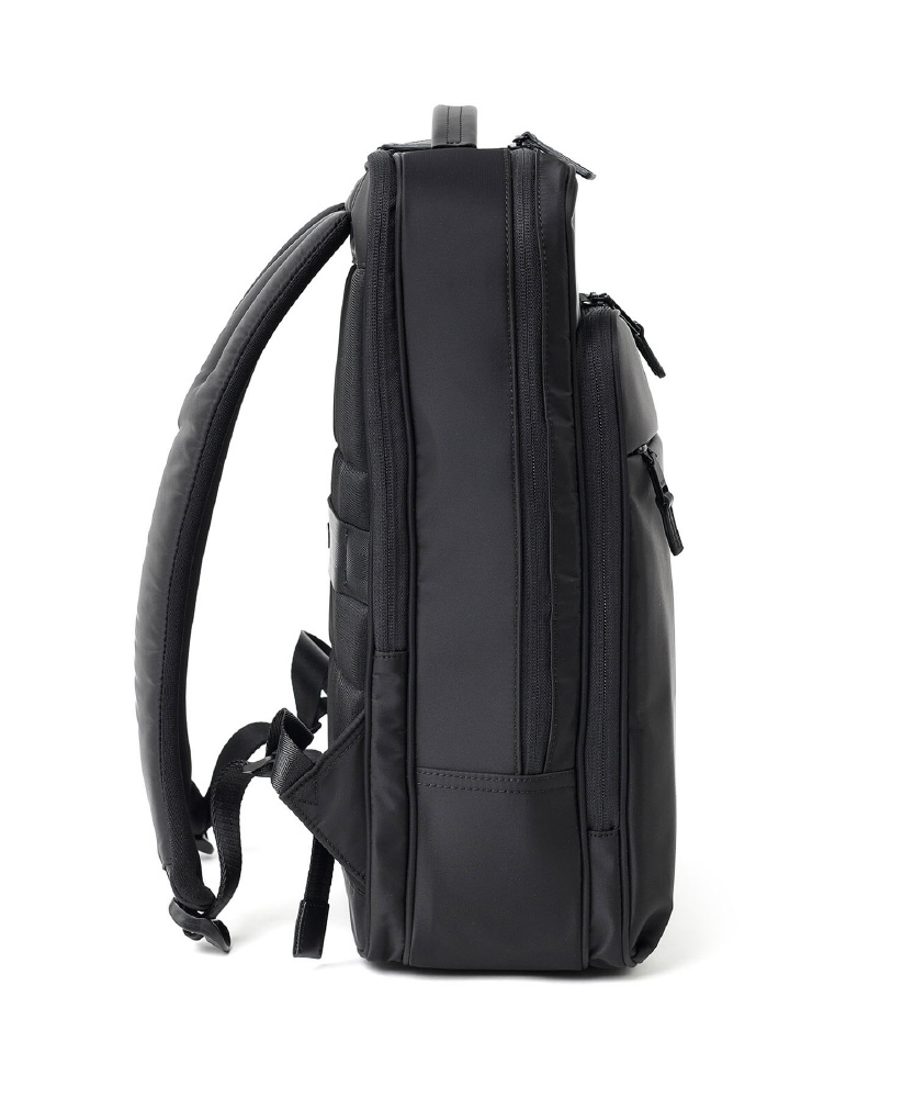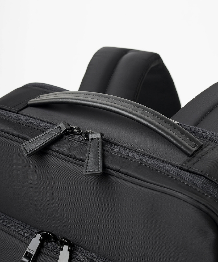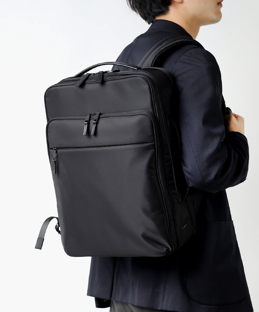 多彩な機能性とスタイリッシュさを兼ね備えたビジネスリュックです。シンプルなブラックのデザインは、どんなビジネスシーンにもマッチし、洗練された印象を与えます。本体素材には撥水性に優れたナイロンを採用しているため、雨の日でも安心して使用することができます。15.6インチのノートPCが収納可能なポケットを含む多彩な収納スペースも魅力です。また、キャリーバッグに簡単に取り付けられるセットアップベルト搭載で、出張や旅行にも最適です。付属のサコッシュポーチは、単体でも使える便利なアイテムです。