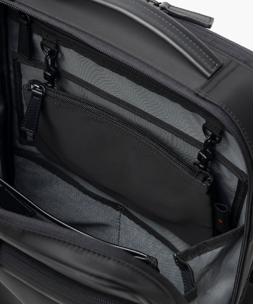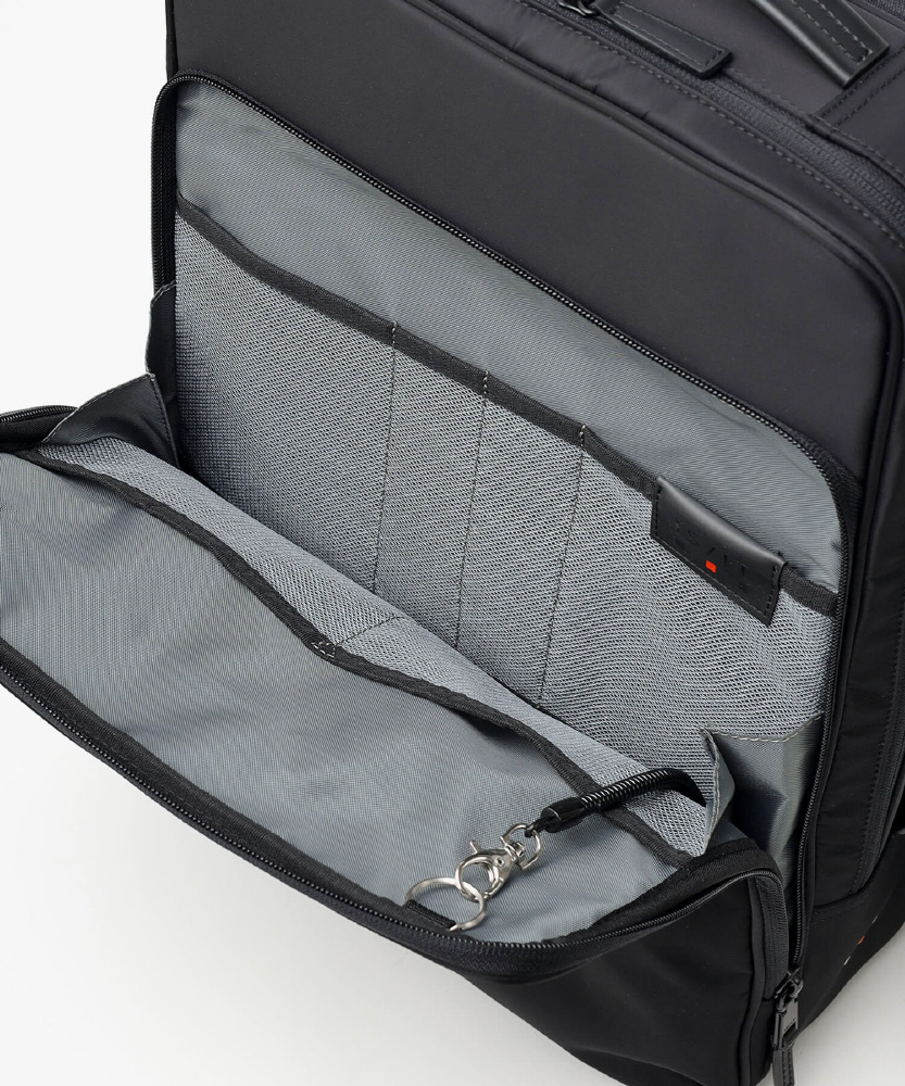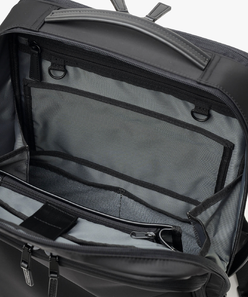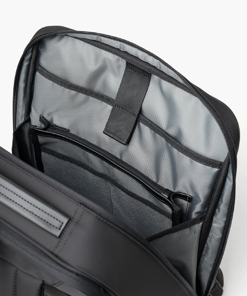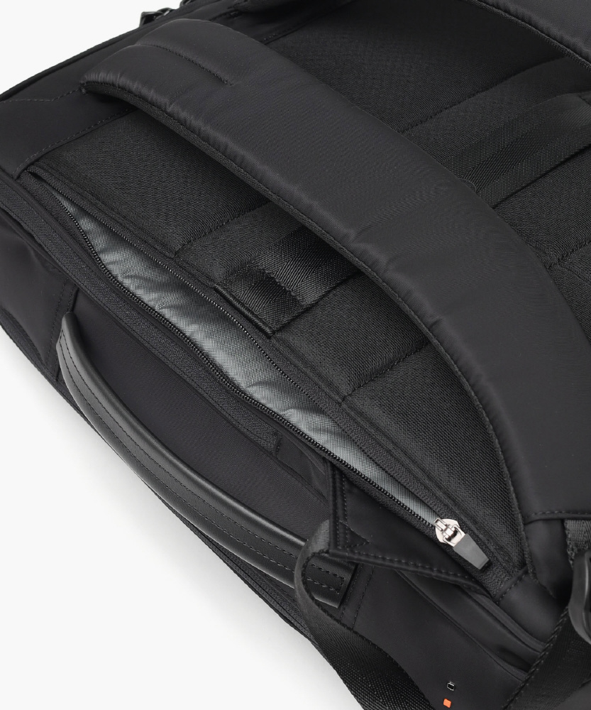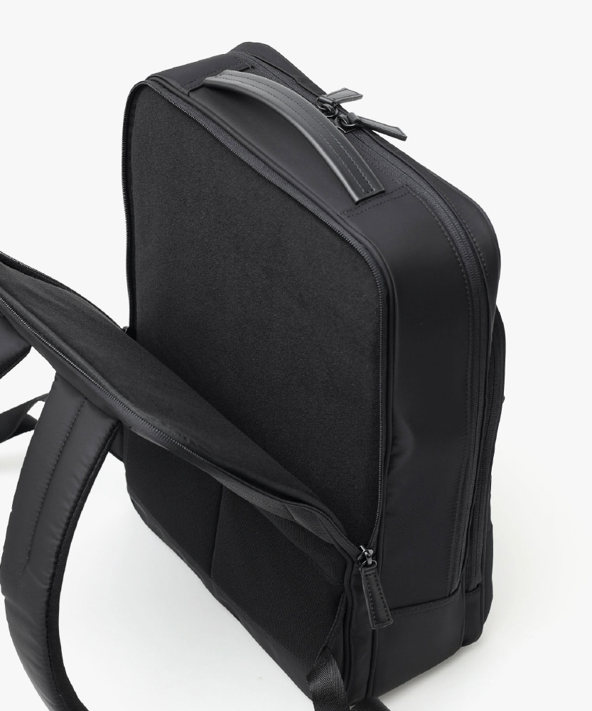 多彩な機能性とスタイリッシュさを兼ね備えたビジネスリュックです。シンプルなブラックのデザインは、どんなビジネスシーンにもマッチし、洗練された印象を与えます。本体素材には撥水性に優れたナイロンを採用しているため、雨の日でも安心して使用することができます。15.6インチのノートPCが収納可能なポケットを含む多彩な収納スペースも魅力です。また、キャリーバッグに簡単に取り付けられるセットアップベルト搭載で、出張や旅行にも最適です。付属のサコッシュポーチは、単体でも使える便利なアイテムです。