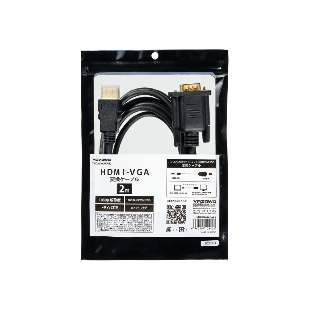 HDMI-VGA変換ケーブル 2.0m HDMI Ver1.2 ブラック YHDMIVGACAB2 [HDMI⇔VGA /2m]