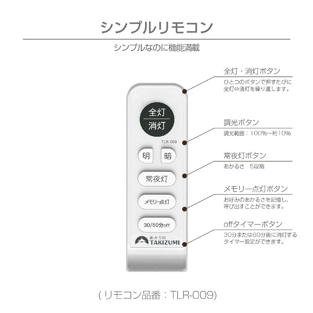 仕様1 調光範囲 100%〜約10% (常夜灯5段階調光)