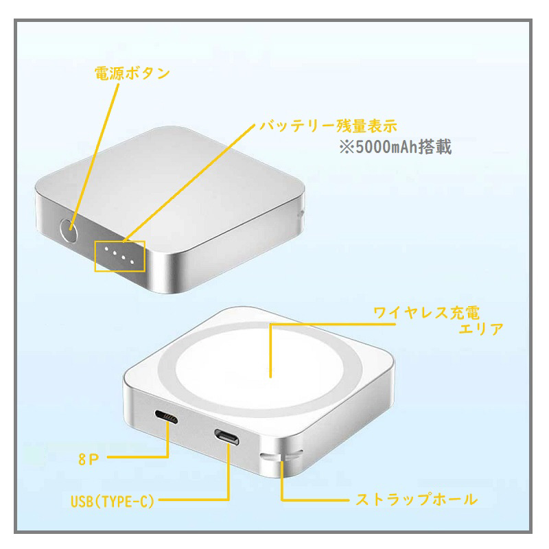 Applewatch対応ワイヤレスチャージキーホルダー5000mAh