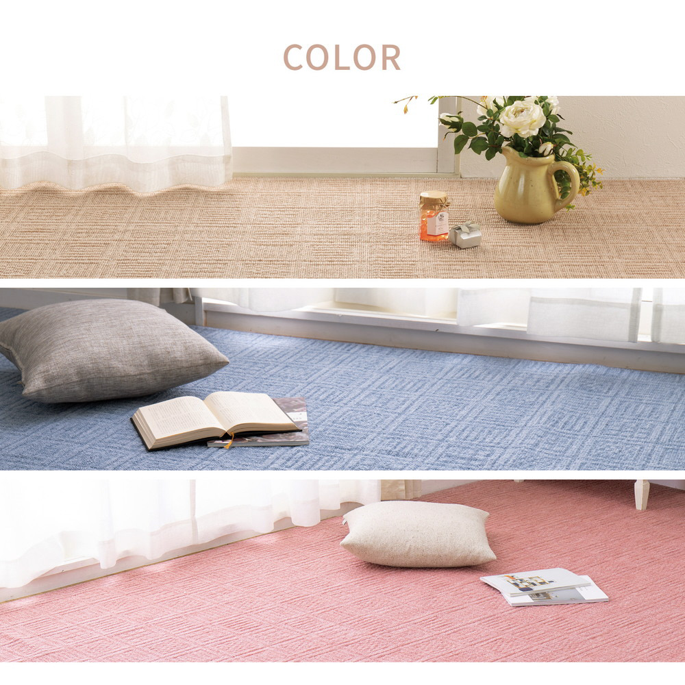 超軽量カーペット。一人暮らしでも持ち運び簡単。弾力があり復元性に優れていてへたりにくく、ふかふかとした肌触りが特徴。