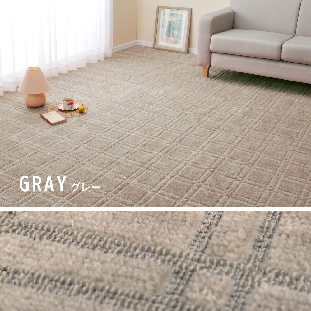 敷き詰めても中敷でもつかえる抗菌機能付きデザインカーペット。ローループ&ハイカットで2パターンの肌触りを味わえるのが特徴。高級感があり、ペットやお子様のいるご家庭におススメです。