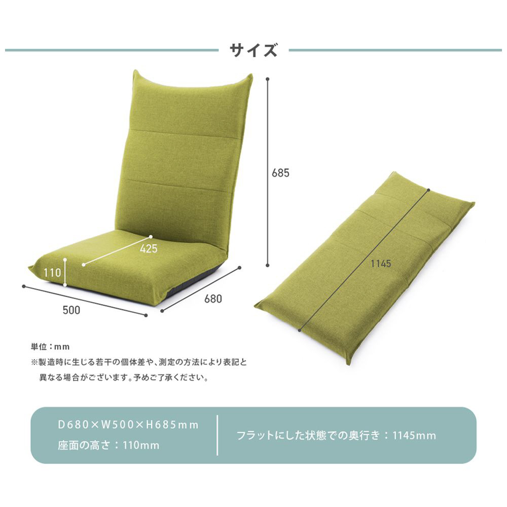 ハイバックとリクライニングでゆったりくつろぐことができる座椅子。