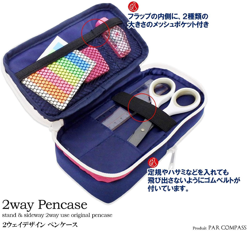 タテにもヨコにも使えて、収納力のあるメッシュポケット付きペンケースです。
