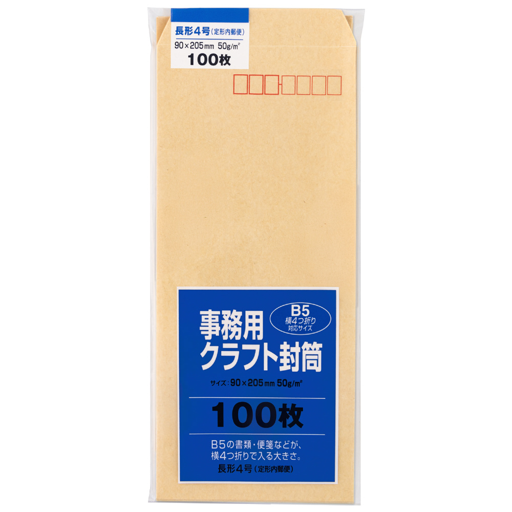 事務用クラフト封筒長形4号B5横4つ折り対応サイズ/100枚