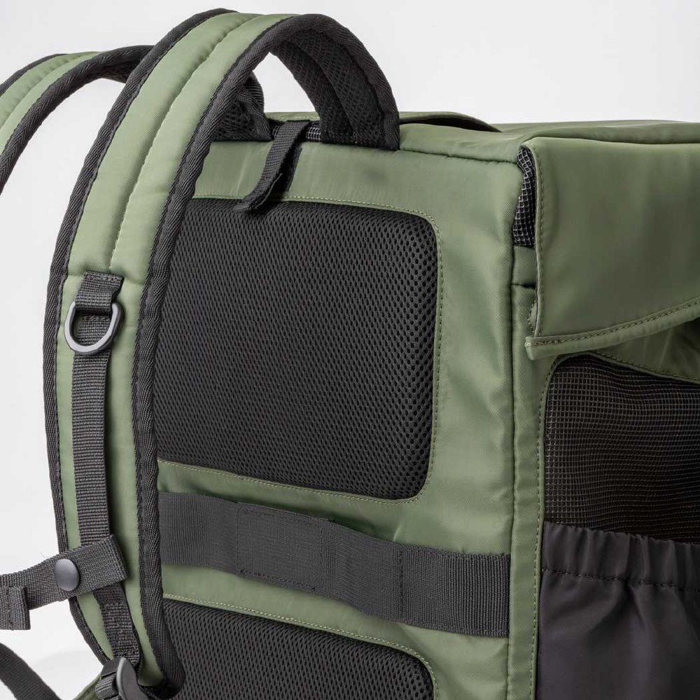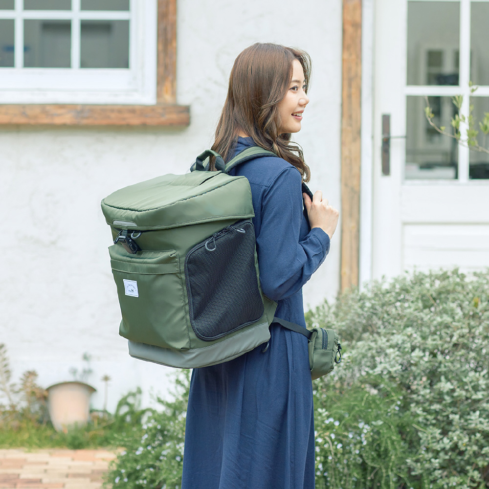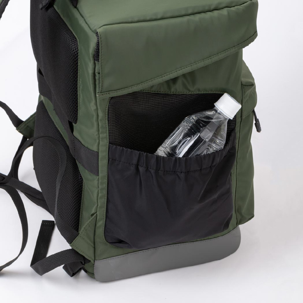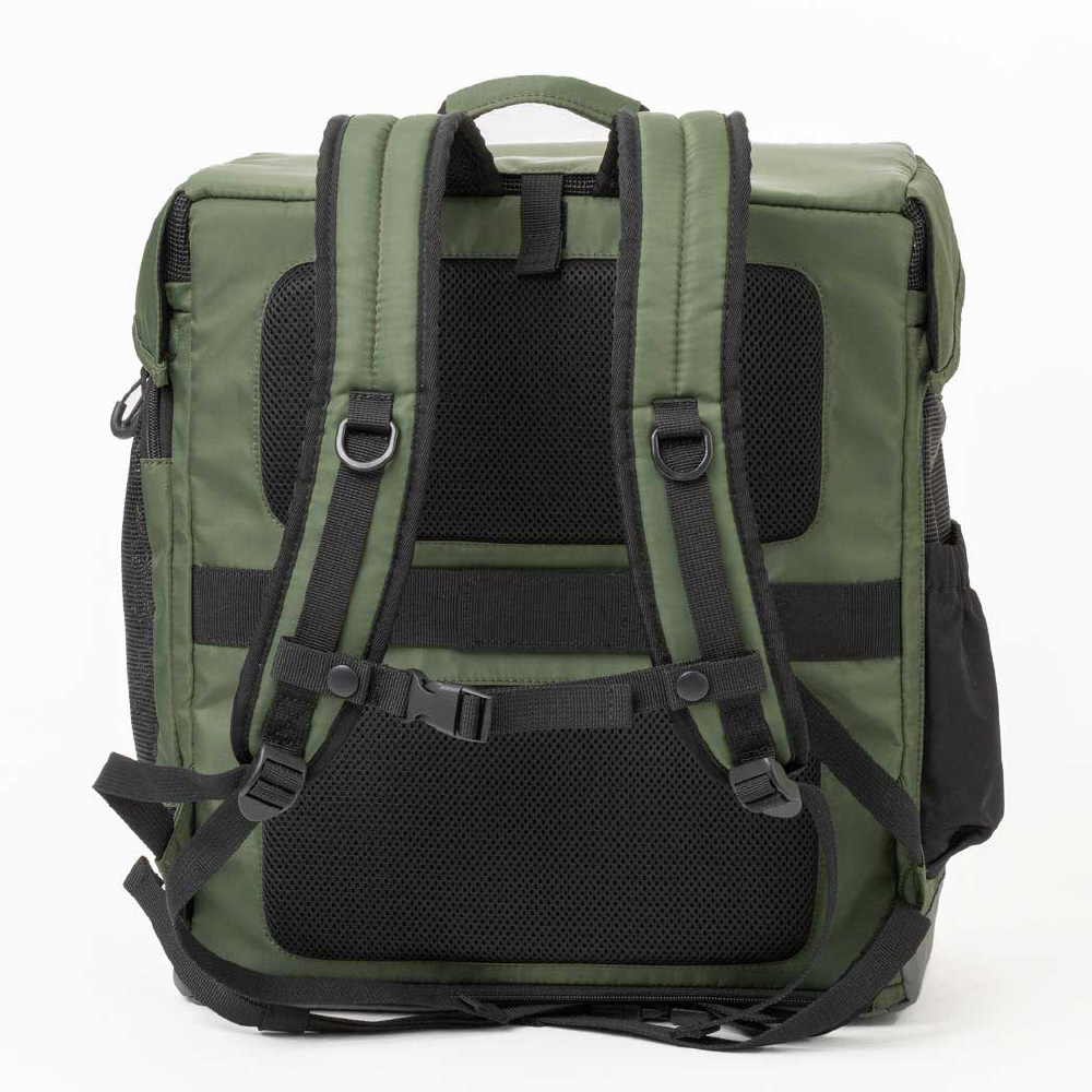 仕様1 両サイドはメッシュ仕様、底面に保冷剤やカイロを入れられるポケットを装備