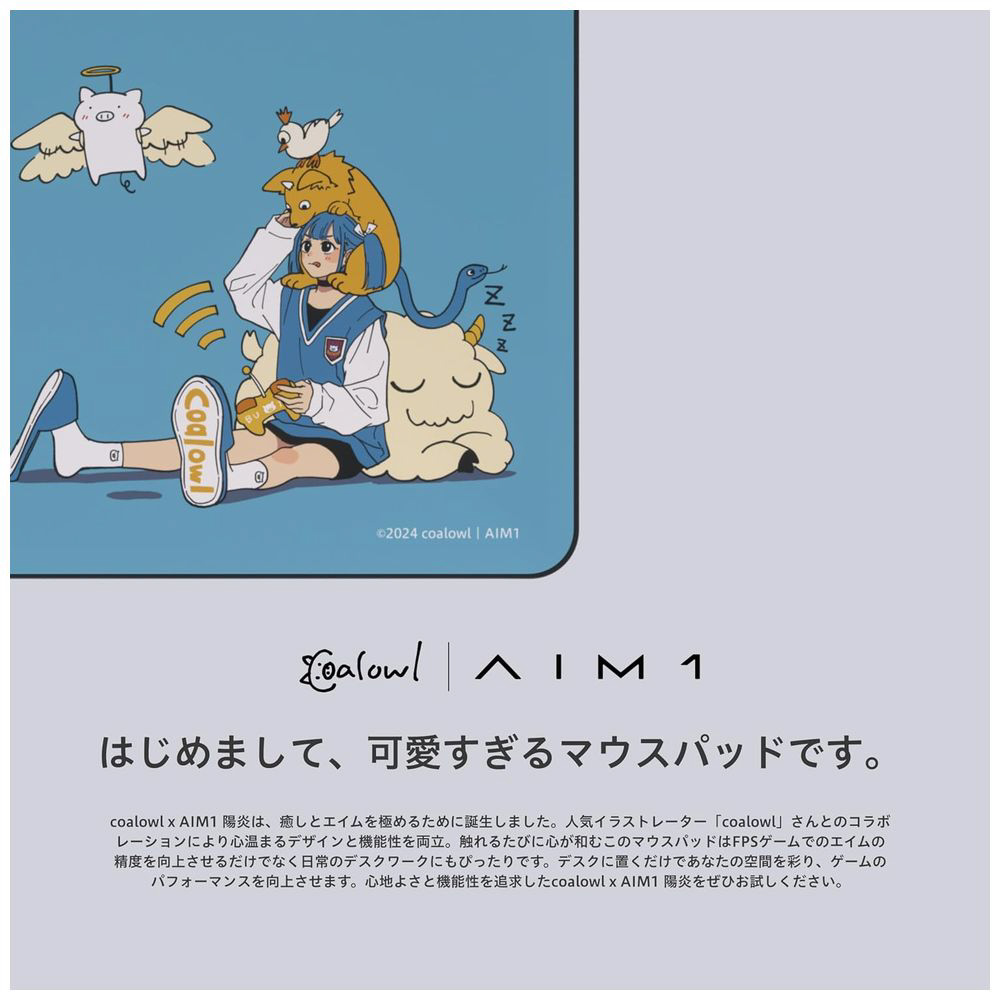 coalowl x AIM1 陽炎は、癒しとエイムを極めるために誕生しました。人気イラストレーター「coalowl」さんとのコラボレーションにより、心温まるデザインと機能性を両立。触れるたびに心が和むこのマウスパッドは、FPSゲームでのエイムの精度を向上させるだけでなく、日常のデスクワークにもぴったりです。