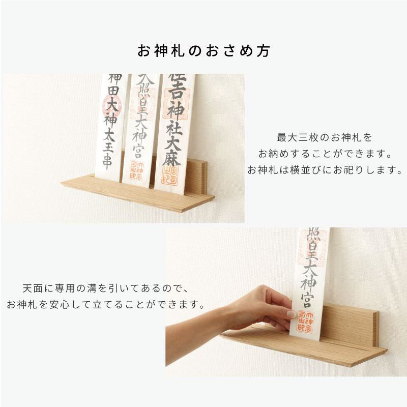 幅約30cmと小ぶりなカタチ、それでいてお神札は3枚対応とコンパクトにまとまっています。