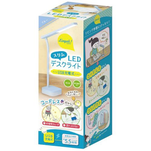 スリムLEDデスクライト USB充電式 リビガク ブルー LV-5765-B