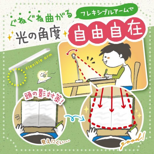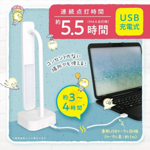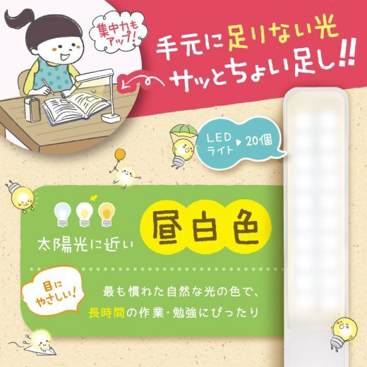 目にやさしい昼白色。コンセントがない場所でも使えるUSB充電式。