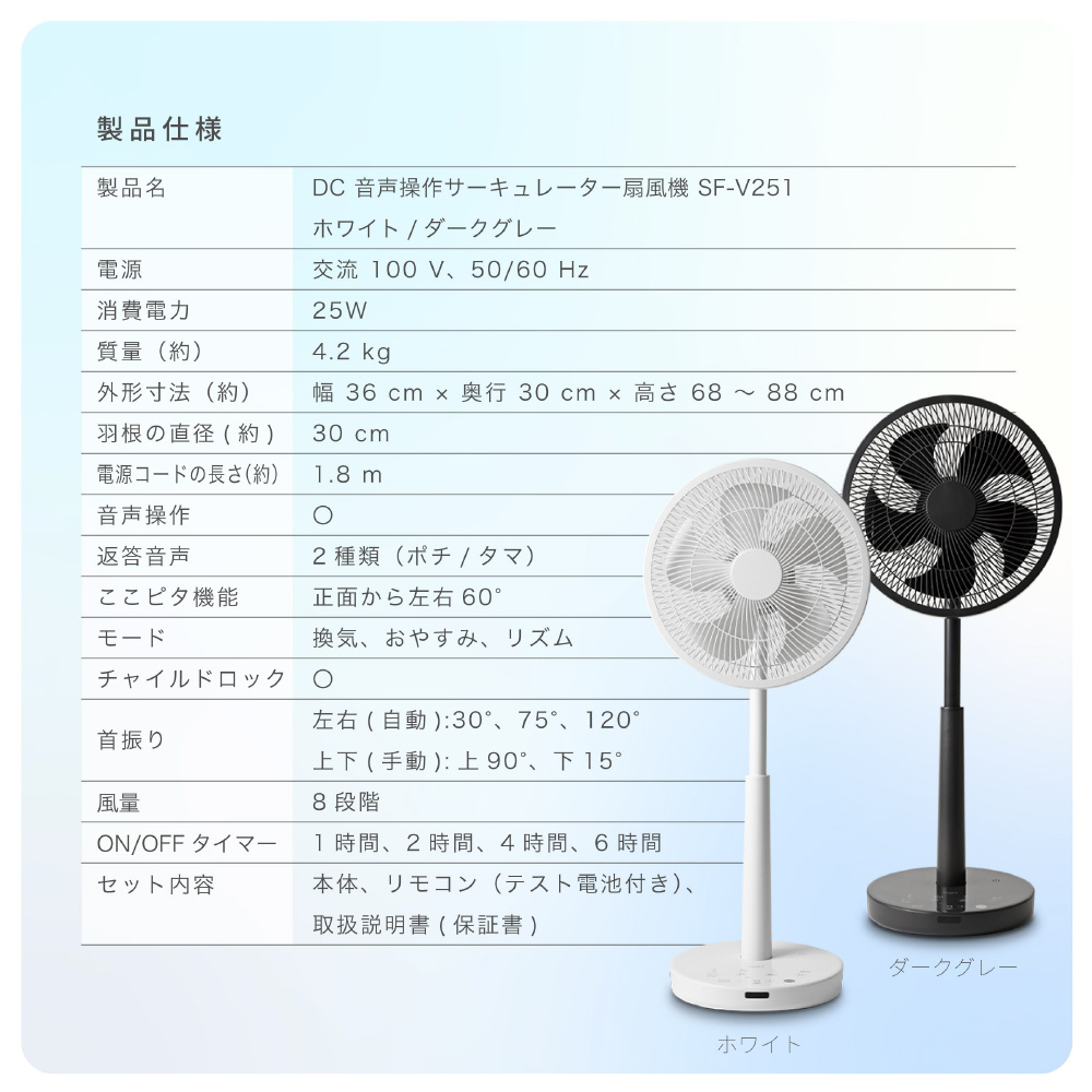 DC音声操作サーキュレーター扇風機 シロカのポチタマ扇 ダークグレー SF-V251HD [DCモーター搭載 /リモコン付き]