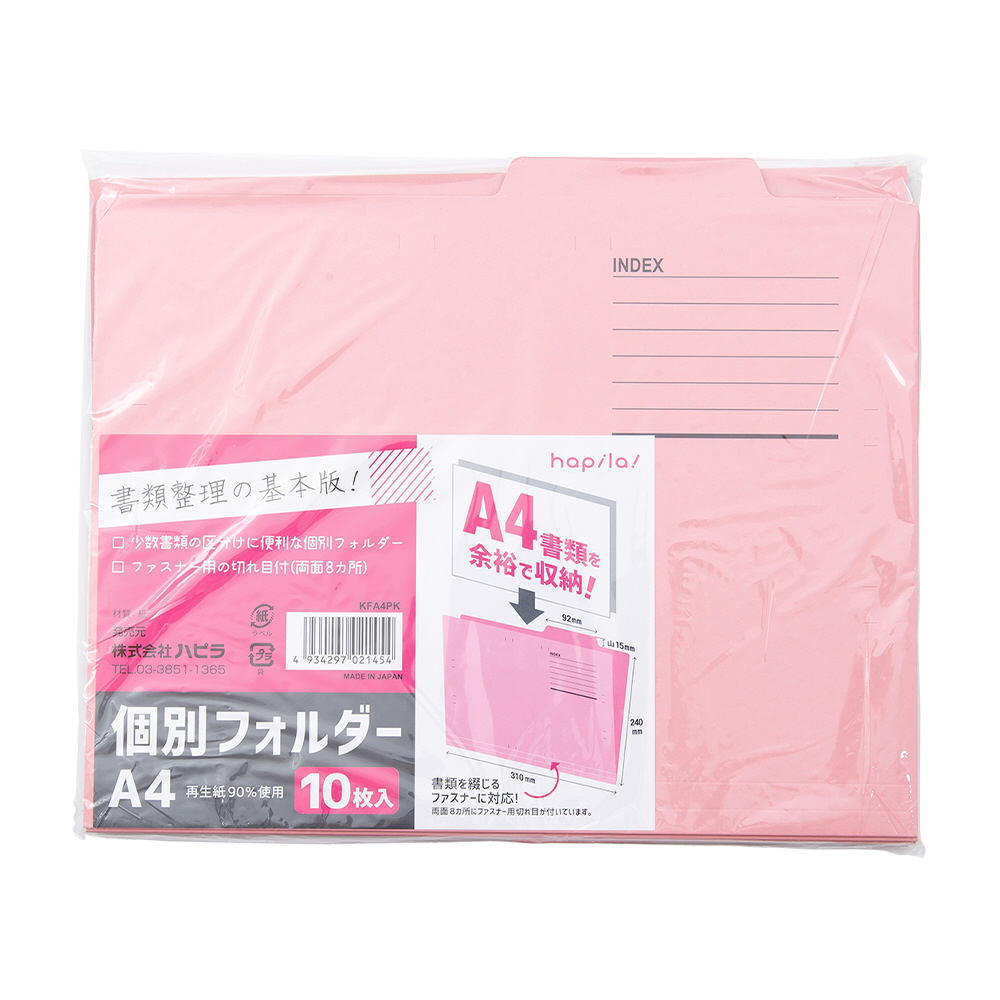 ハピラ 個別ホルダー A4 ピンク 10枚入