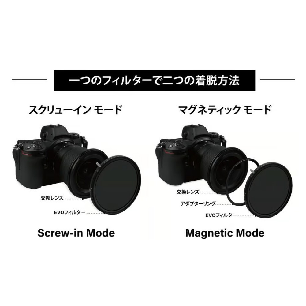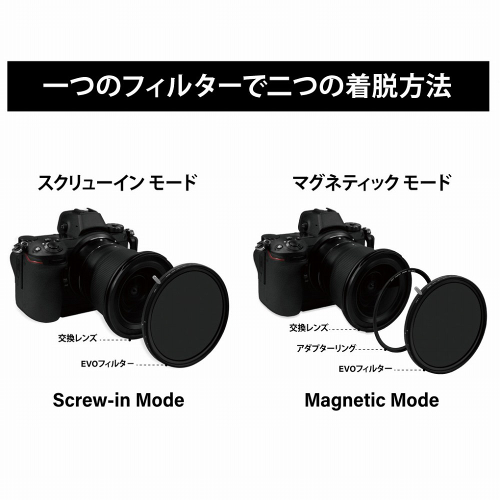 ■EVOシリーズ CPLフィルターは、ねじ込み式とマグネット式の両方に対応した多機能なサーキュラーPLフィルターです。