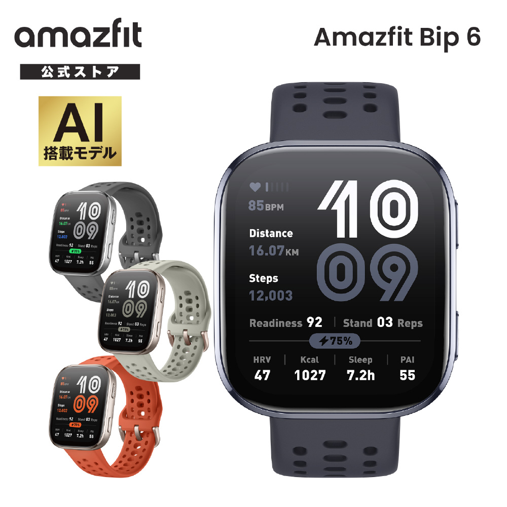 音声で操作できる先進AI、見やすい大画面、精度の高い健康管理機能。これだけ詰め込んで、この価格。Amazfit Bip 6は、スマートウォッチの“当たり前”をアップデートする、コスパ最強の1本です