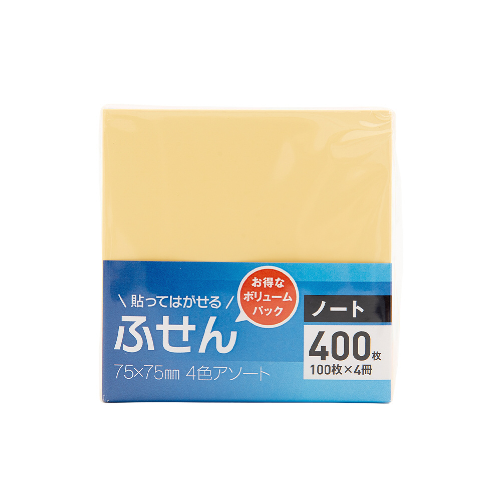 メモや情報整理に使いやすい75×75サイズ。4色アソートで色分け作業などに最適です。<BR>(半角)ブルー・グリーン・ピンク・イエロー 100枚×4冊<BR>(半角)ふせんサイズ:縦75x横75mm<BR>(半角)材質:紙