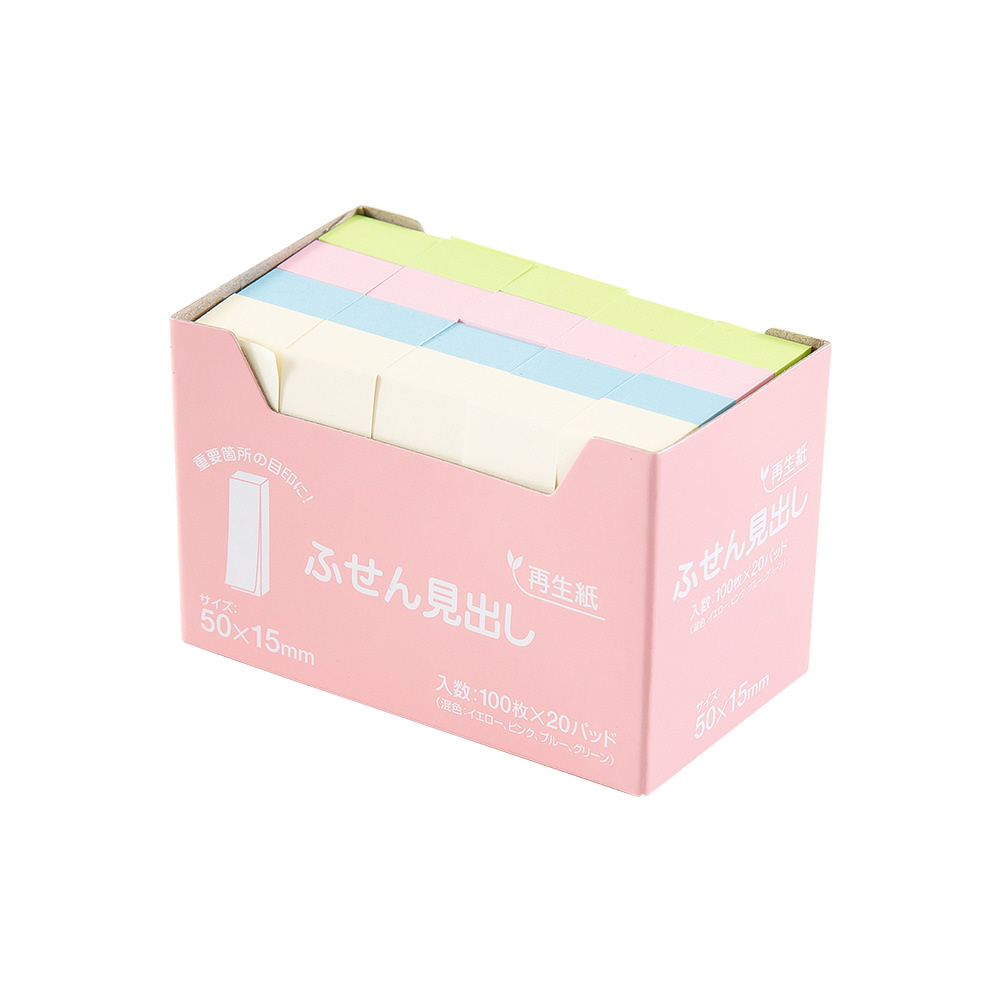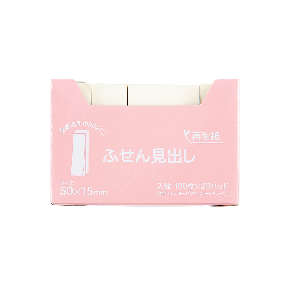 ハピラ 再生紙ふせん見出 50x15mm 100枚x20冊 4色各5冊