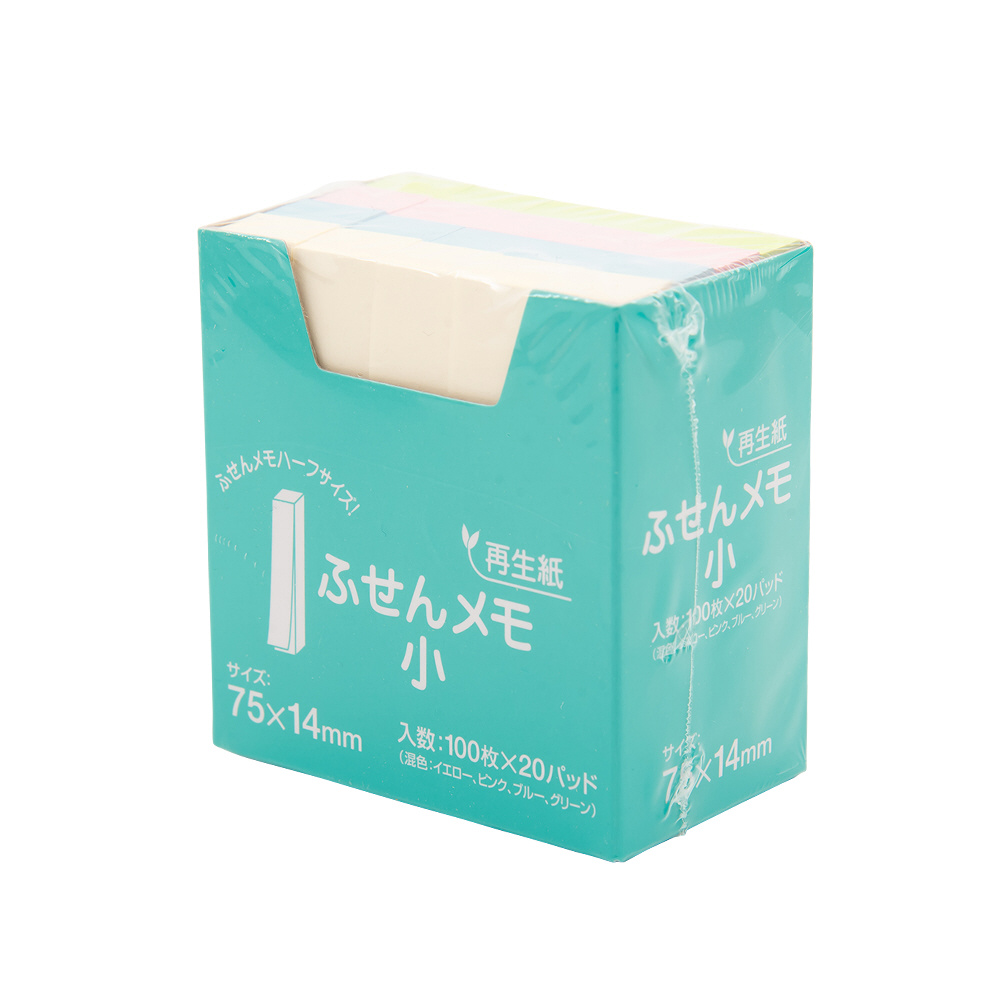 ハピラ 再生紙ふせんメモ・小 100枚x20冊 4色各5冊