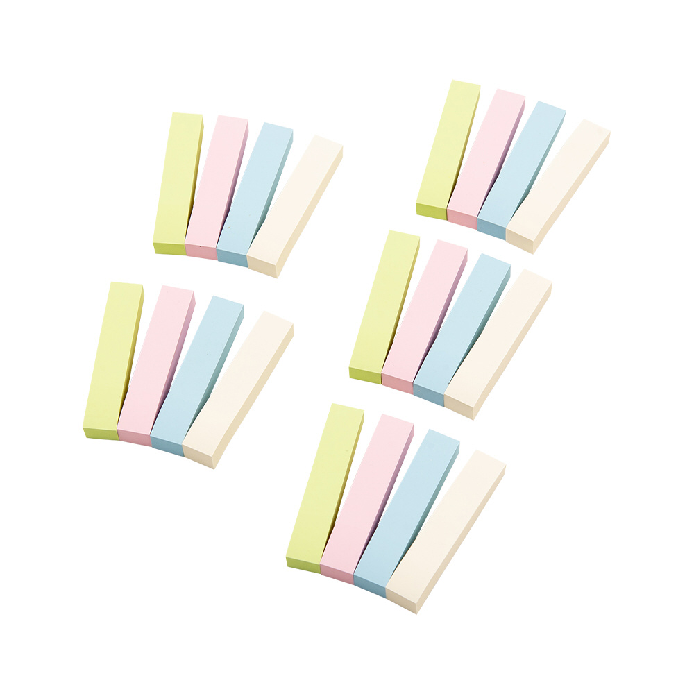細かい箇所に貼りやすい75×14サイズ。4色アソートで色分け作業などに最適です。<BR>(半角)ブルー・グリーン・ピンク・イエロー 100枚×20冊<BR>(半角)ふせんのサイズ:75x14mm<BR>(半角)材質:再生紙