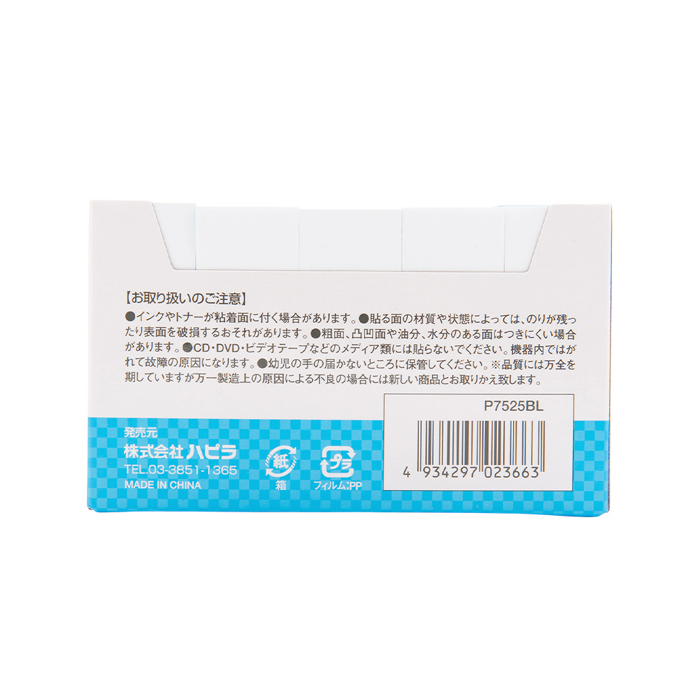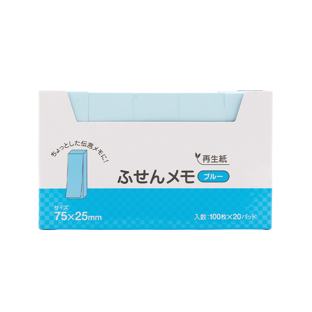 ハピラ 再生紙ふせんメモ 75x25mm ブルー 100枚x20冊
