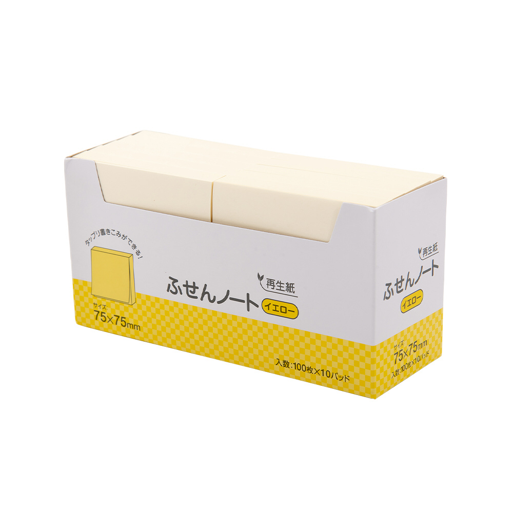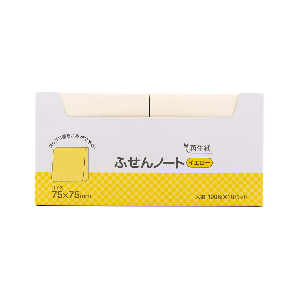 ハピラ 再生紙ふせんノート 75x75mm イエロー 100枚x10冊